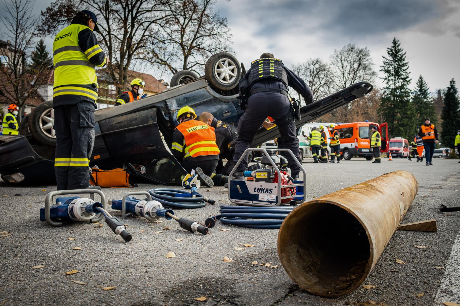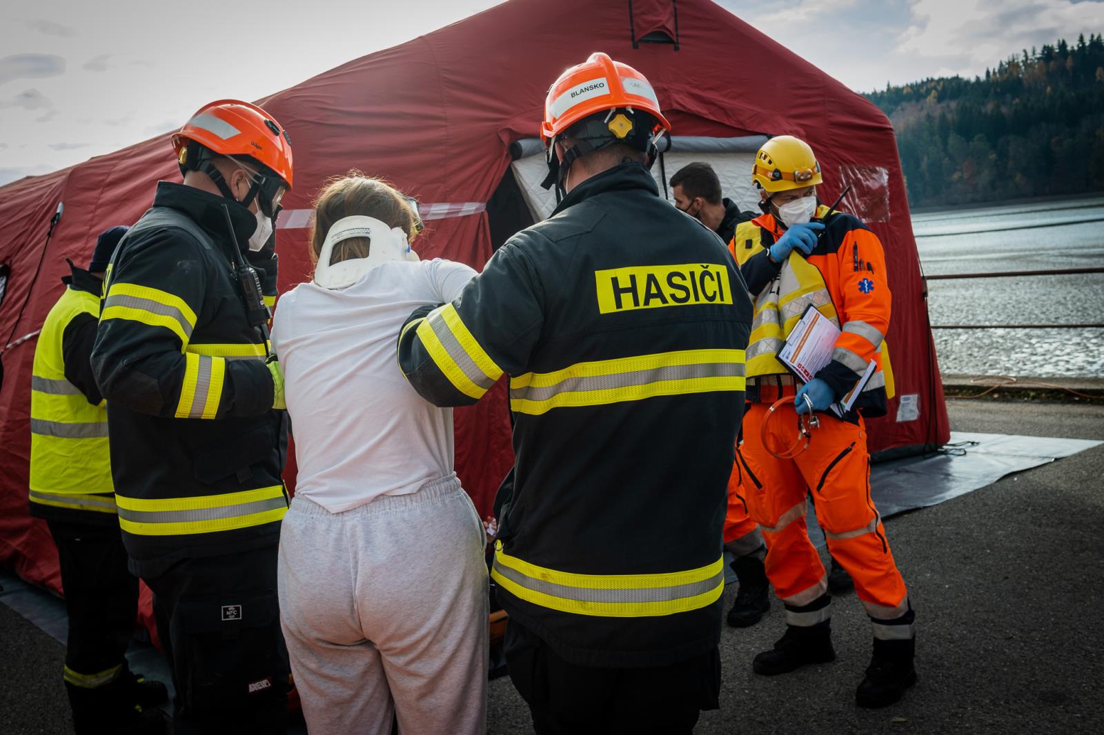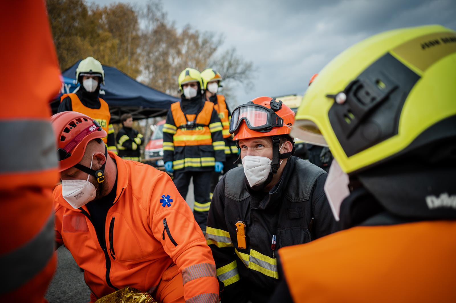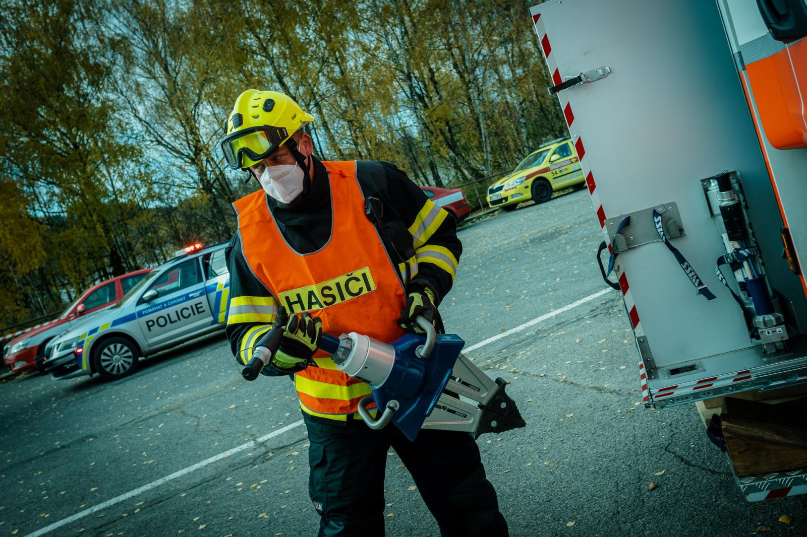 Téměř třicet profesionálních a dobrovolných hasičů sehrálo během cvičení důležitou roli. Po střetu dvou osobních aut, dodávky a cyklisty bylo nutné zraněné vyprošťovat, transportovat a zajistit zázemí zasahujícím.