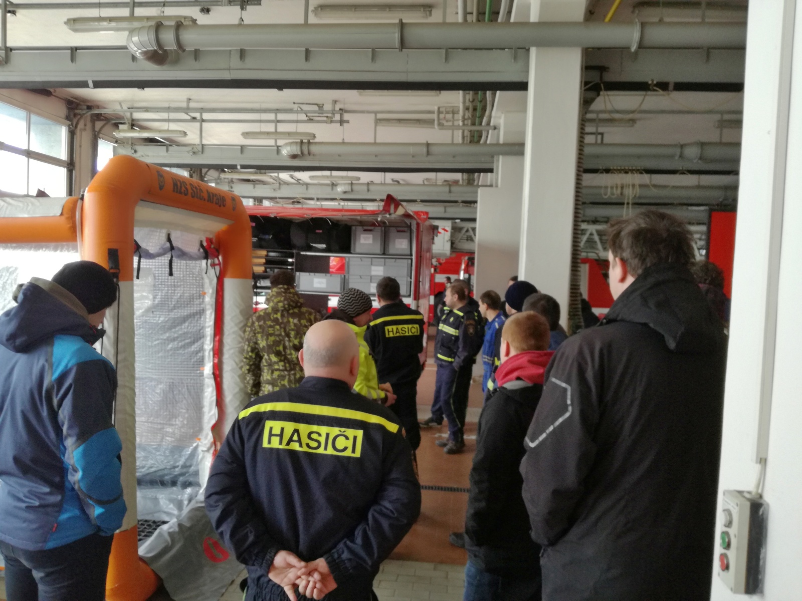 V rámci praktického bloku se dobrovolní hasiči seznámili s kontejnerem nouzového přežití a funkčností dekontaminační sprchy. Závěrem všichni zúčastnění úspěšně absolvovali test ze získaných znalostí a obdrželi osvědčení o absolvování kurzu.