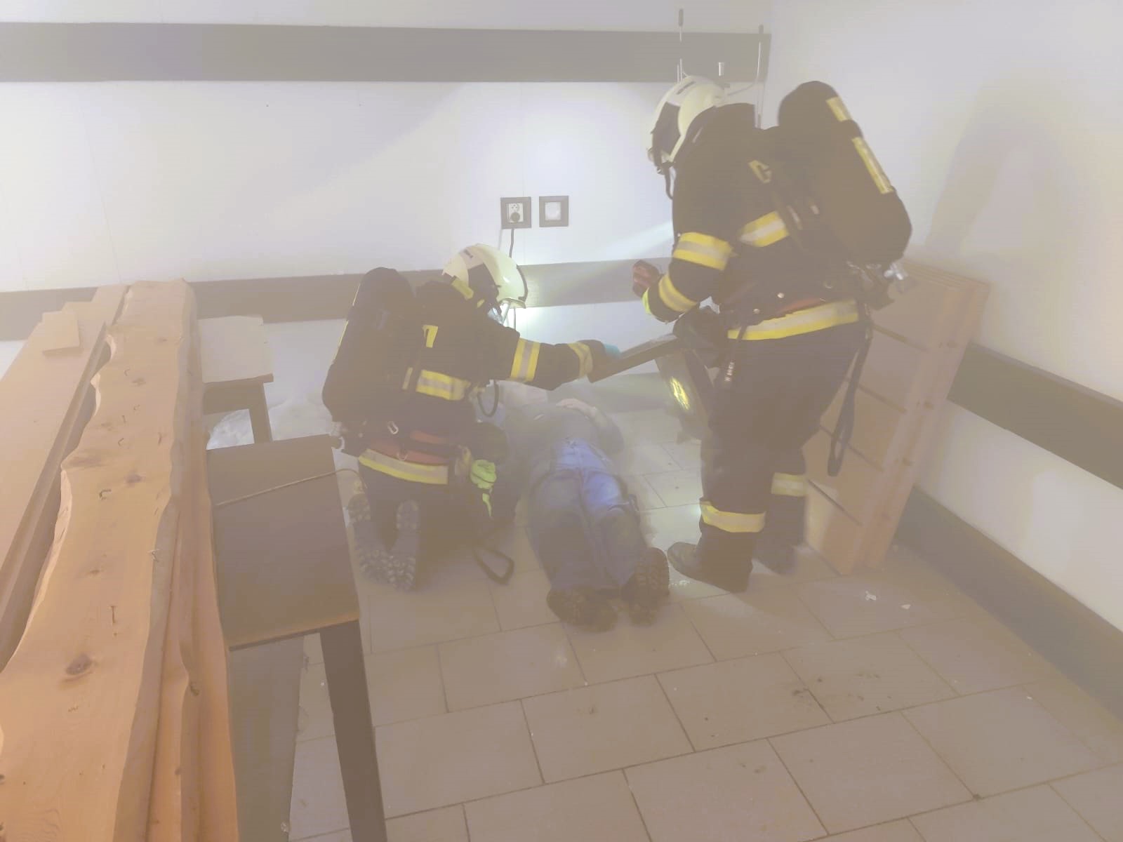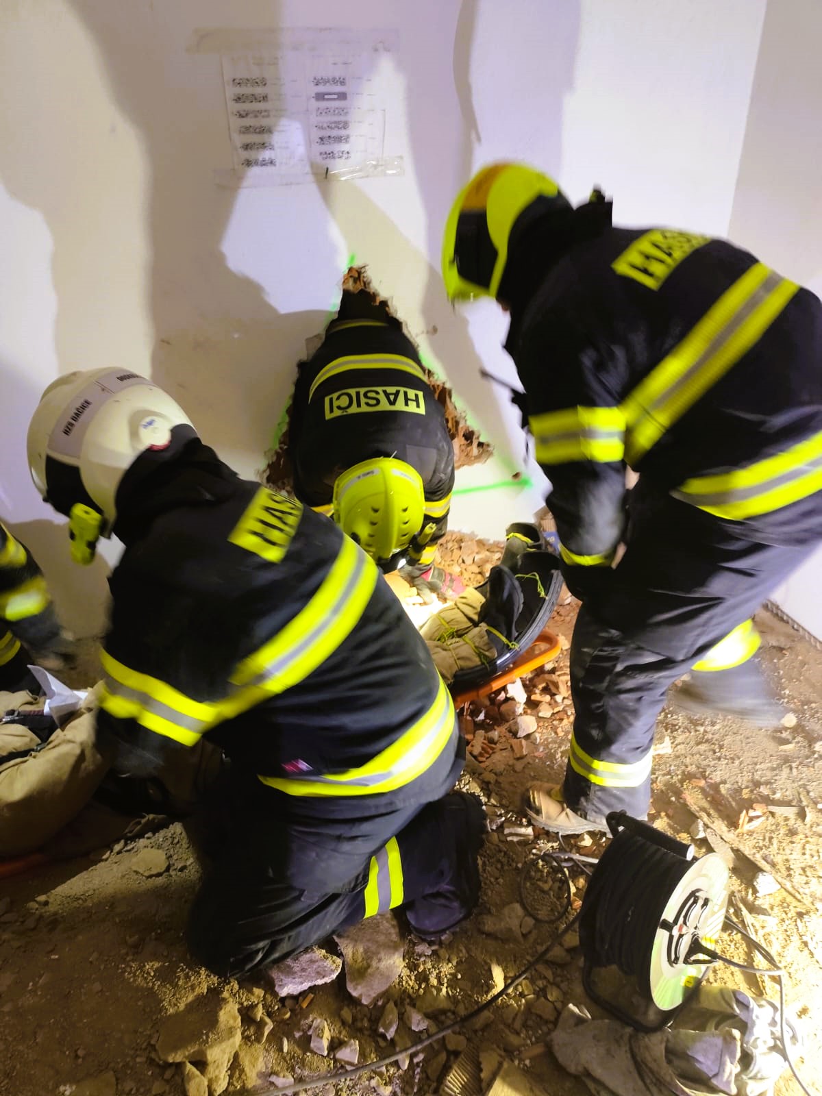 Drama ve Studené: Hasiči cvičili záchranu uvězněných osob ze zřícené stavby