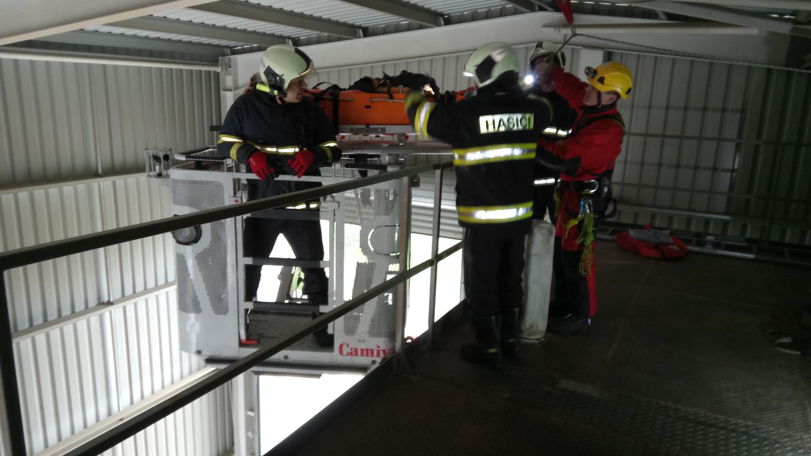 Místem pondělního cvičení byla Teplárna Písek, a. s., kde písečtí profesionální a dobrovolní hasiči podle plánu cvičení měli za úkol z kotelny evakuovat zaměstnance a jednu zraněnou osobu. Námět cvičení předpokládal zahoření uhelného prachu a následný požár v úrovni druhého patra kotelny. Při pokusu o hašení požáru se vážně zraní jeden zaměstnanec a není schopen samostatného pohybu, zůstává na místě. Ostatní zaměstnanci se evakuují. Zasahující hasiči pro průzkumu vytvořili dopravní vedení včetně útočných proudů s napojením na hydrantovou síť a okamžitě zahájili vyhledávání dvou osob, které se nestihly evakuovat. Jedna osoba byla nalezena a evakuována ze 4. patra pomocí automobilového žebříku. Druhého zraněného hasiči zafixovali do nosítek a také evakuovali ven. Hasiči pracovali vzhledem k silnému zakouření v dýchací technice. Na odvětrání byla nasazena přetlaková ventilace.