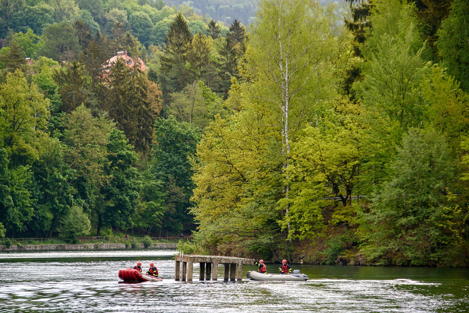 Na místě byly využity technické prostředky jako nafukovací čluny s lodním motorem a kompletní výbava pro práci na vodě.