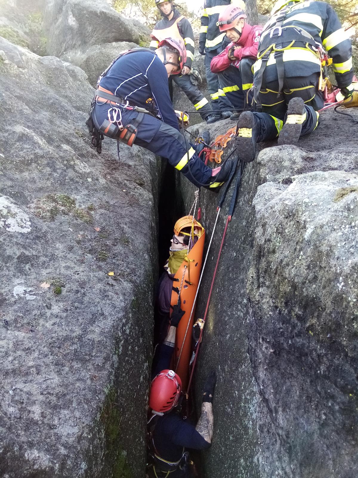 Hasiči museli slanit za figurantem do skalní průrvy a zachránit jej – na dně průrvy zraněného ošetřili a zajistili mu tepelný komfort, následně jej umístili do transportních nosítek SKED. V těchto nosítkách byla osoba vytažena pomocí kladkostroje ven ze skalní průrvy. Poté bylo zapotřebí natáhnout a dopnout lano přes údolí dlouhé asi 90 metrů. Nosítka s figurantem byla po napnutém laně přetažena na druhou stranu – i s tímto úkolem si lezci poradili. Na závěr proběhlo vyhodnocení, díky kterému se příslušníci můžou ve svých teoretických znalostech i praktických zkušenostech dále zlepšovat.