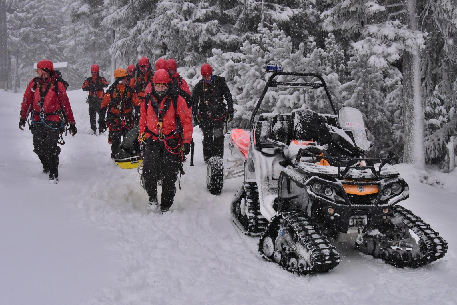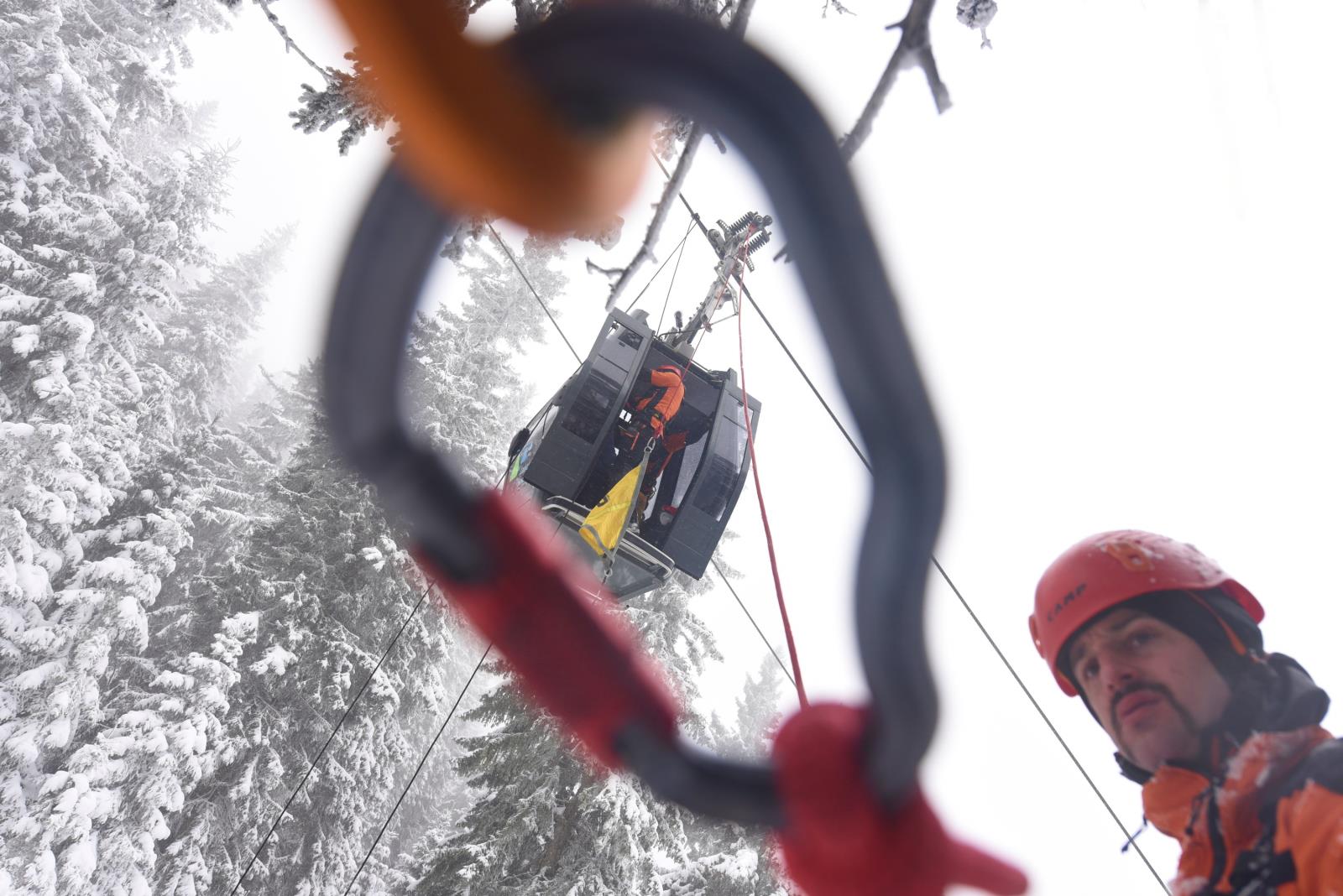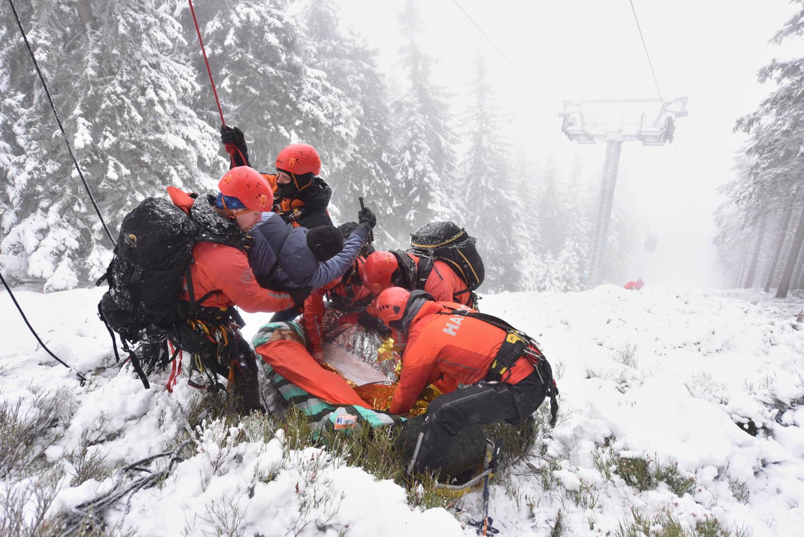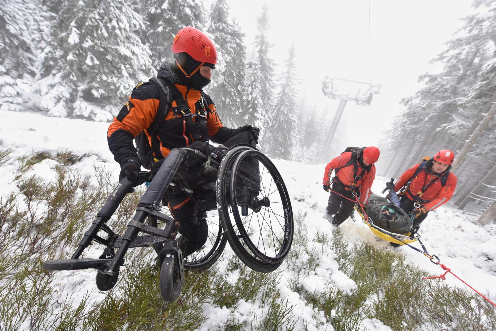 Doslova reálné zimní podmínky měli hasiči a horští záchranáři v Krkonoších, kde cvičili v pondělí 21. 11. 2022 na lanové dráze na Sněžku. Přes 50 záchranářů – profesionální hasiči se specializací na záchranu z výšky a nad volnou hloubkou ze všech územních odborů Královéhradeckého kraje a členové horské služby z ČR i Polska cvičili záchranu osob z kabinek porouchané lanovky za pomocí lanové techniky na úseku z Pece pod Sněžkou na Růžovou horu. Mezi figuranty byli také dva speciální hosté – naši kolegové Libor a Martin, kteří jsou na invalidním vozíku. Procvičili jsme si tak netradičně i evakuaci vozíčkářů a dále jejich transport těžko přístupným horským terénem přímo pod lanovkou.