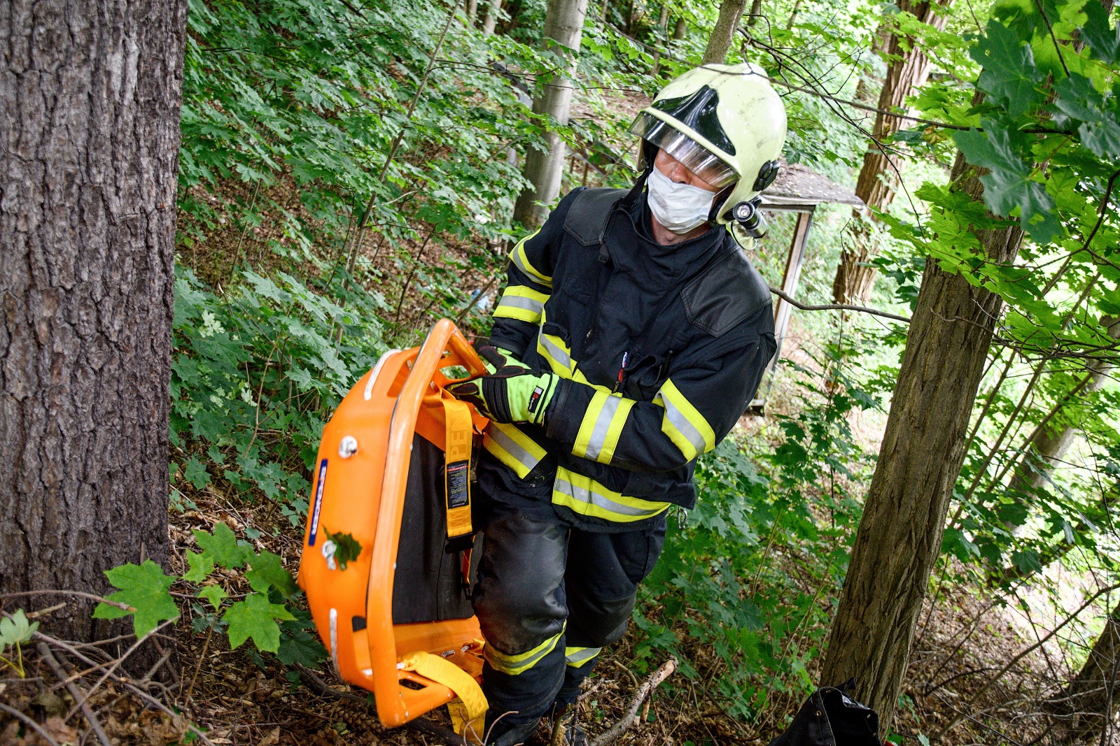 Ve středu 24. června se v Sokolské ulici v Liberci konalo prověřovací cvičení libereckých hasičů směny B. Námětem cvičení byla záchrana zavalené osoby v nepřístupném a svažitém terénu. Při manipulaci a kácení stromu došlo k zavalení obsluhy motorové pily kmenem vzrostlého stromu v těžce přístupném terénu. U zavalené osoby došlo ke zranění bederní části těla, v době příjezdu jednotek byla při vědomí a komunikovala. Hasiči zraněnou osobu pomocí vyprošťovacího a lezeckého vybavení zpod stromu vyprostili, poskytli předlékařské ošetření a současně zajistili bezpečný transport zraněné osoby z nepřístupného terénu ke vzdálenější komunikaci.