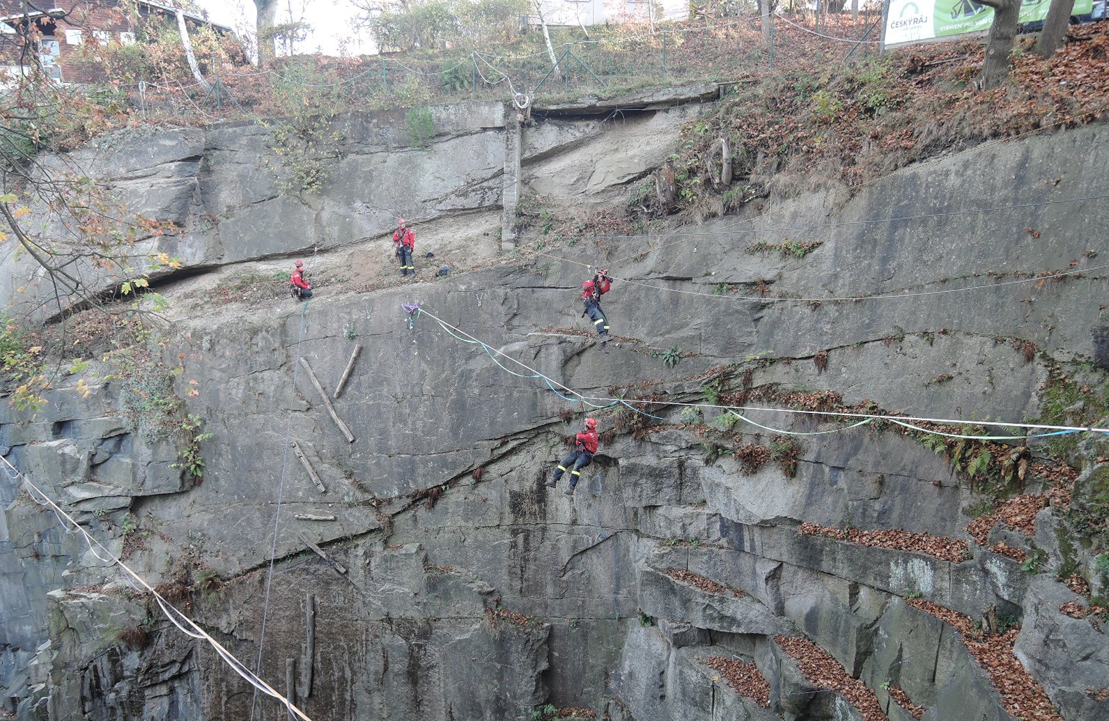 První stanoviště bylo zvoleno v průmyslovém objektu INTEX, kde si lezci vyzkoušeli ošetření a vytažení osoby, která propadla otvorem v podlaze. Na dalším stanovišti pak lezci cvičili záchranu osoby z reklamního poutače Globus. V tomto případě bylo potřeba pomocí lezeckého vybavení zajistit a spustit osobu v nosítkách na zem. Třetí stanoviště probíhalo na lezecké stěně, kde se cvičila záchrana osoby uvízlé po pádu do highline. Poslední stanoviště bylo v noci na skalním hradě Jezdec v Kateřinkách. Právě na tomto místě lezce čekal nejtěžší úkol dne, najít osobu po pádu ze skalní římsy, která se nacházela 15 metrů pod vrcholem a 25 metrů nad zemí. Po jejím nalezení museli lezci osobu na místě zajistit proti dalšímu pádu, ošetřit zranění a poskytnout maximální tepelný komfort, pomocí speciálního batohu TEPLO. Po těchto úkonech museli osobu bezpečně položit do speciálních nosítek SKED a následně jí transportovat na zem velmi náročným skalním terénem. Poslední stanoviště bylo pro lezce velmi náročné, a to nejen z důvodu, že výcvik probíhal za tmy a v neznámém terénu, ale také kvůli velmi nízkým teplotám, které po dlouhých 24 hodinách museli lezci absolvovat. „Jsem rád, že všichni lezci k výcviku přistupovali zodpovědně a věřím, že to pro ně bylo přínosem“ řekl pprap. Zdeněk Jirouš, ze stanice Liberec.
