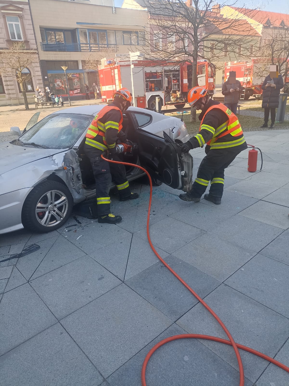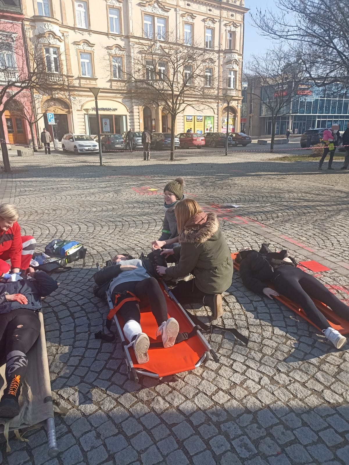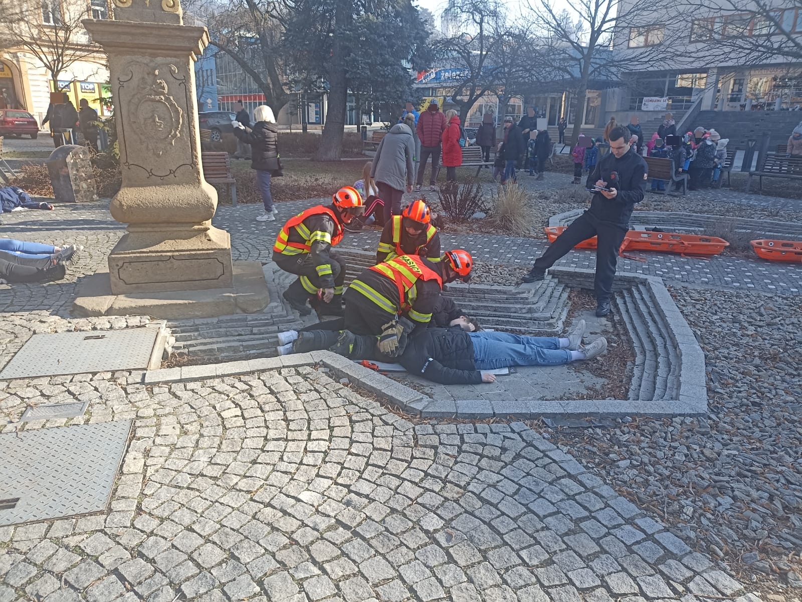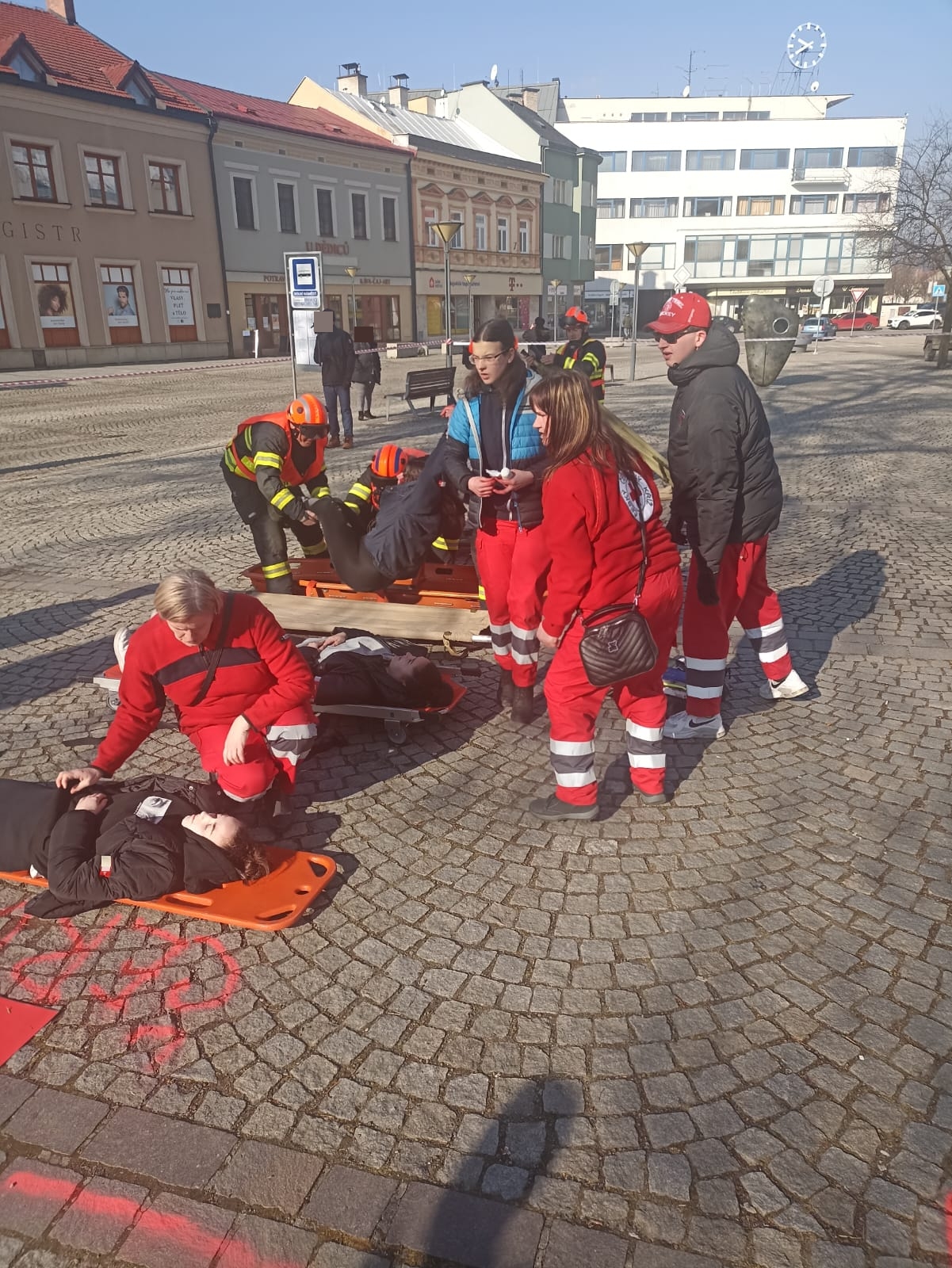 Profesionální hasiči si vybírají různá místa k realizaci svých činností tak, aby simulovali co nejvěrohodněji reálnou situaci a cvičení bylo co nejefektivnější v procvičení různých taktik zásahu. Takovýmto místem se dnes dopoledne stalo Dolní náměstí ve Vsetíně. Kolemjdoucí občané tak mohli vidět hasiče a nejen je ty  v akci. Figuranty si zahráli studenti Střední zdravotnické školy Vsetín. Dalšími zúčastněnými byli i zástupci ČČK – oblastní spolek Vsetín. Všem tak patří velké poděkování za pomoc při realizaci tohoto cvičení.
