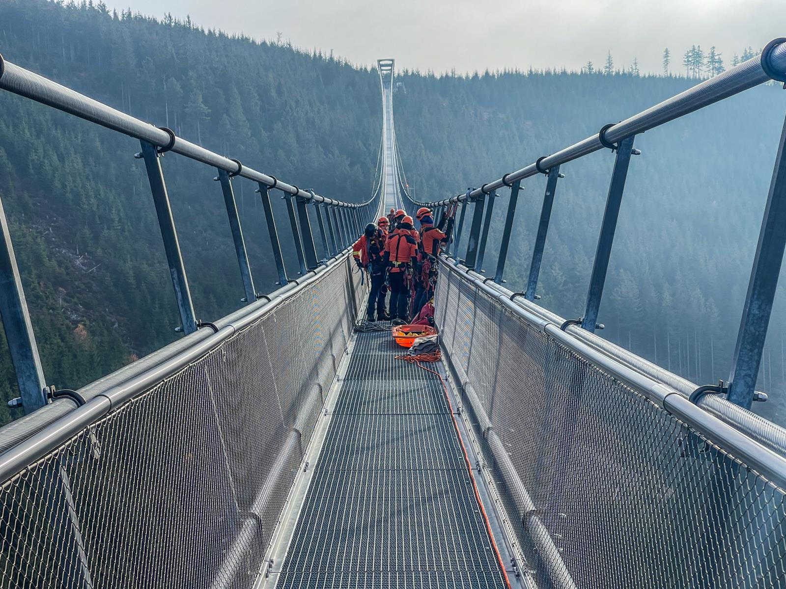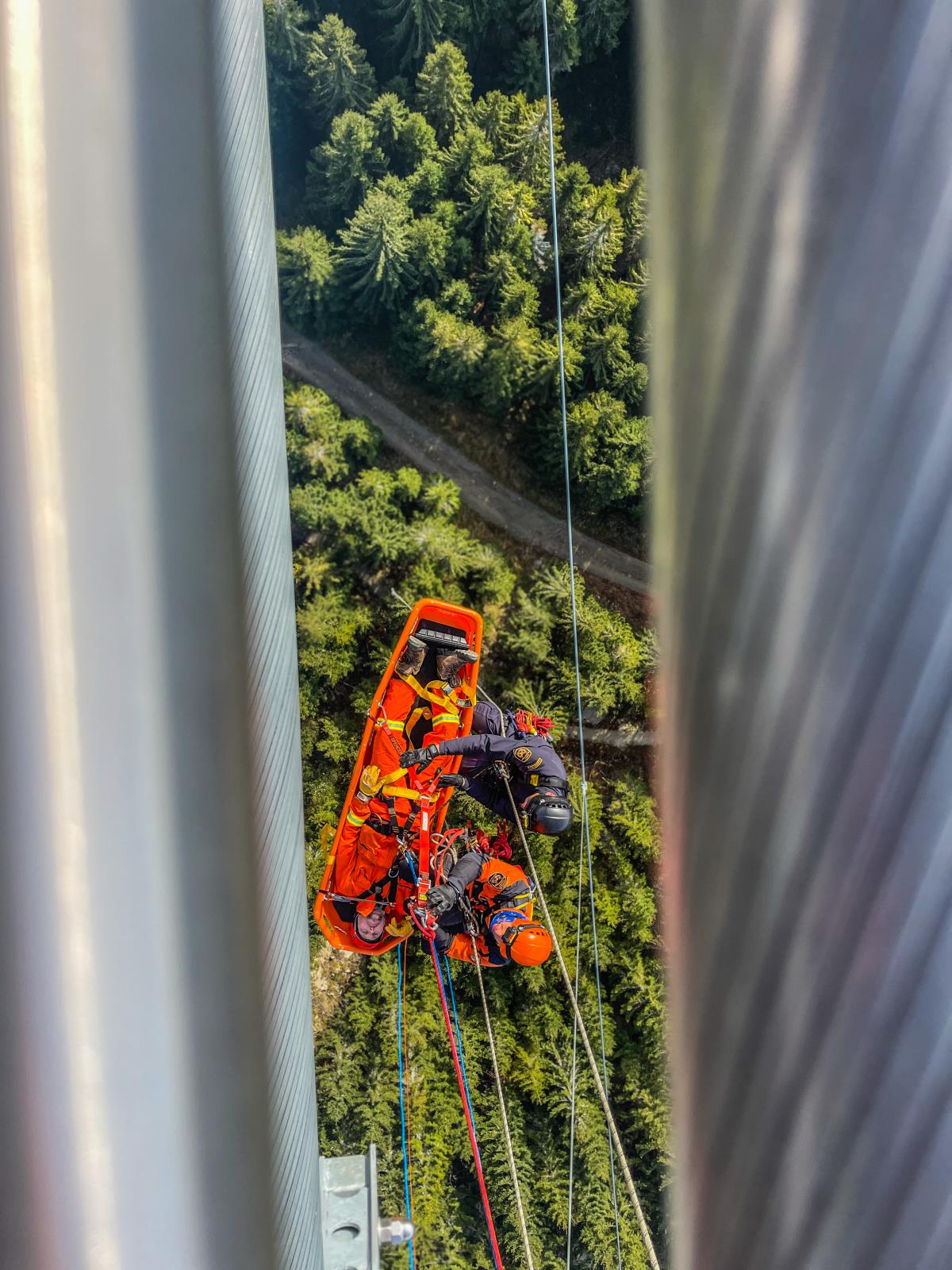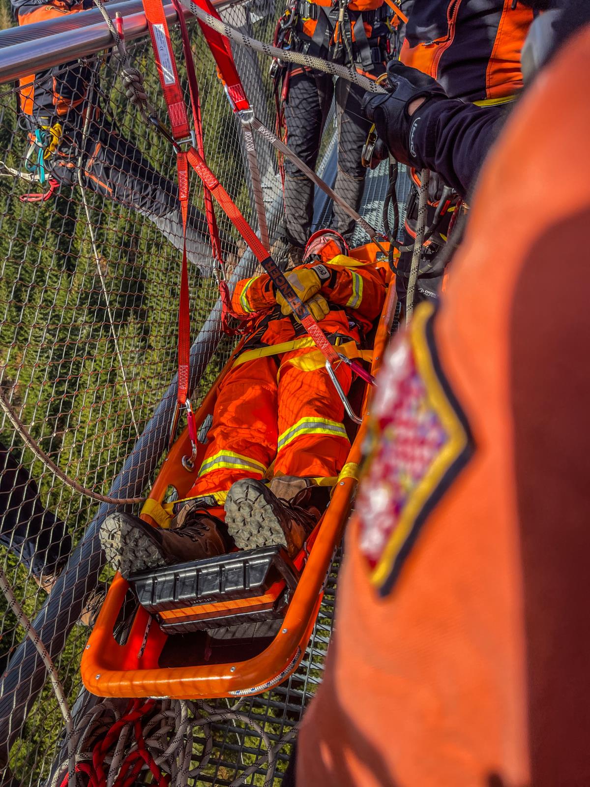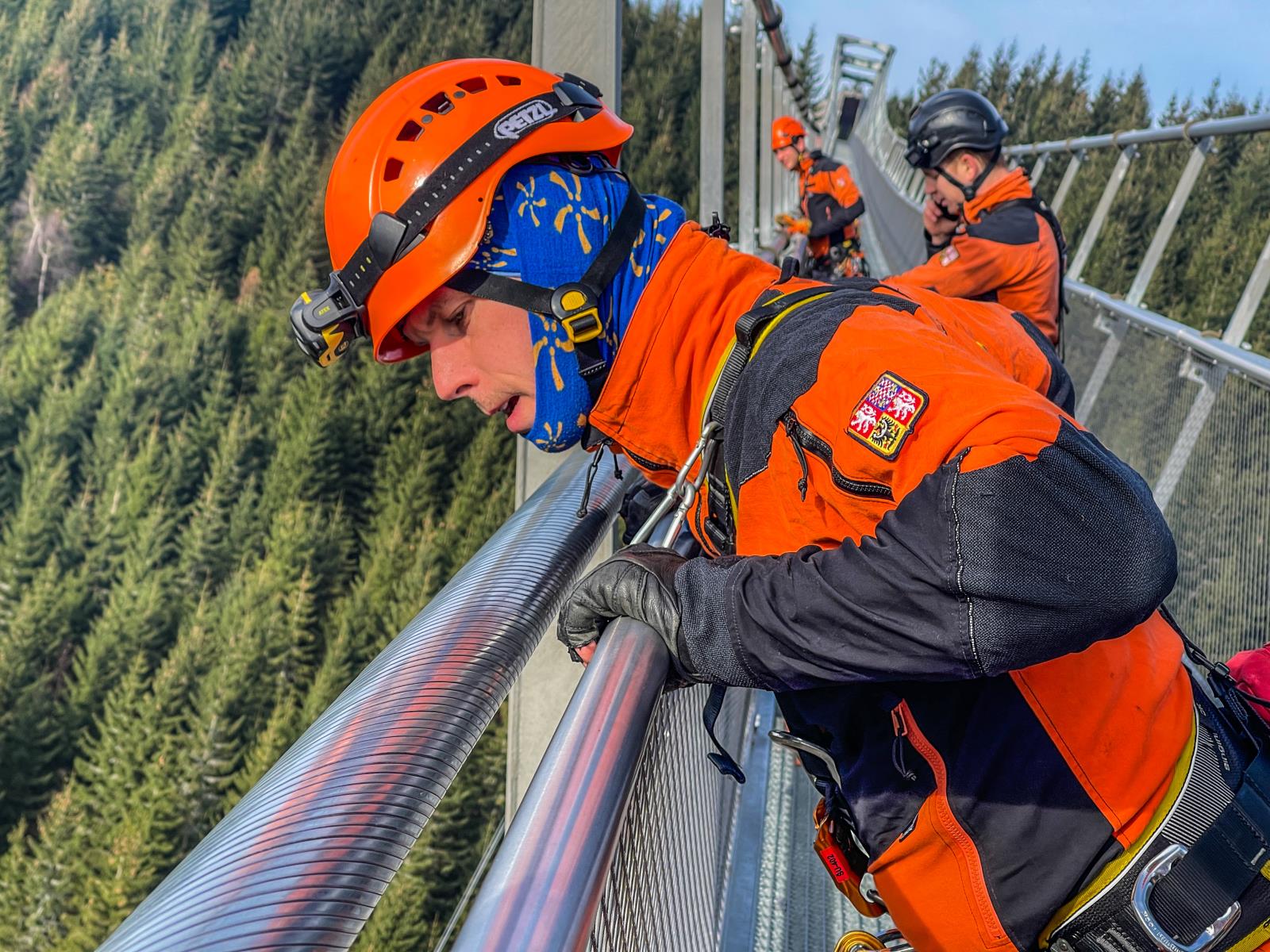 Naši hasiči se nejprve seznámili s problematikou výškových turistických atrakcí. Následně procvičili záchranu vyčerpaného servismana z konstrukce lanového mostu, který je ve výšce 95 metrů nad horským údolím. Zraněného technika zajistili a poskytli mu první pomoc. Výzvou pak bylo jeho uložení do nosítek nad volnou hloubkou.