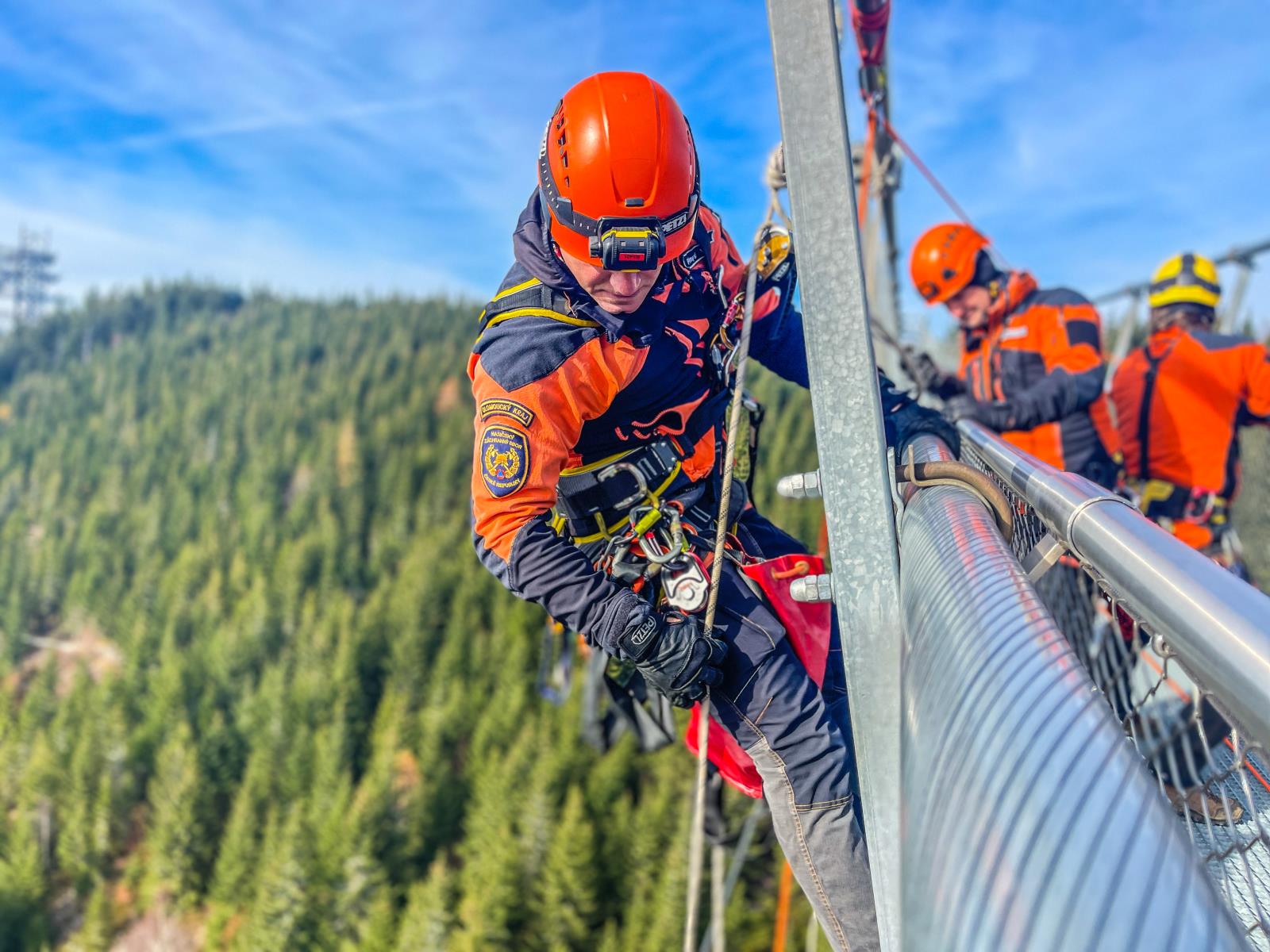 Stezka v oblacích a nejdelší visutý most na světě - atrakce na Dolní Moravě, které hojně navštěvují turisté. A kde je hodně lidí, tam se může stát naprosto cokoli. Proto na těchto místech plánujeme pravidelně výcviky našich specialistů. Tentokrát se v horách připravovali hasiči-lezci ze stanice Šumperk, kteří zde simulovali záchranu z výšky i z hloubky. Scénáře jsme nachystali tak, aby se co nejvíce podobaly skutečnosti.
