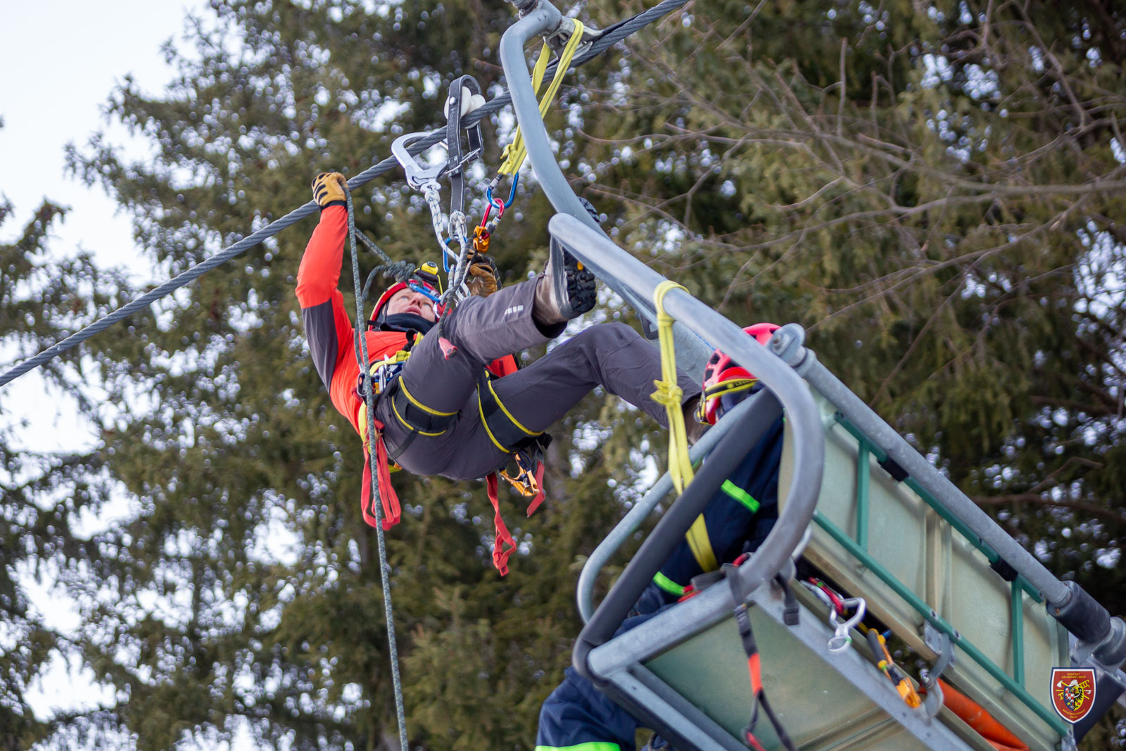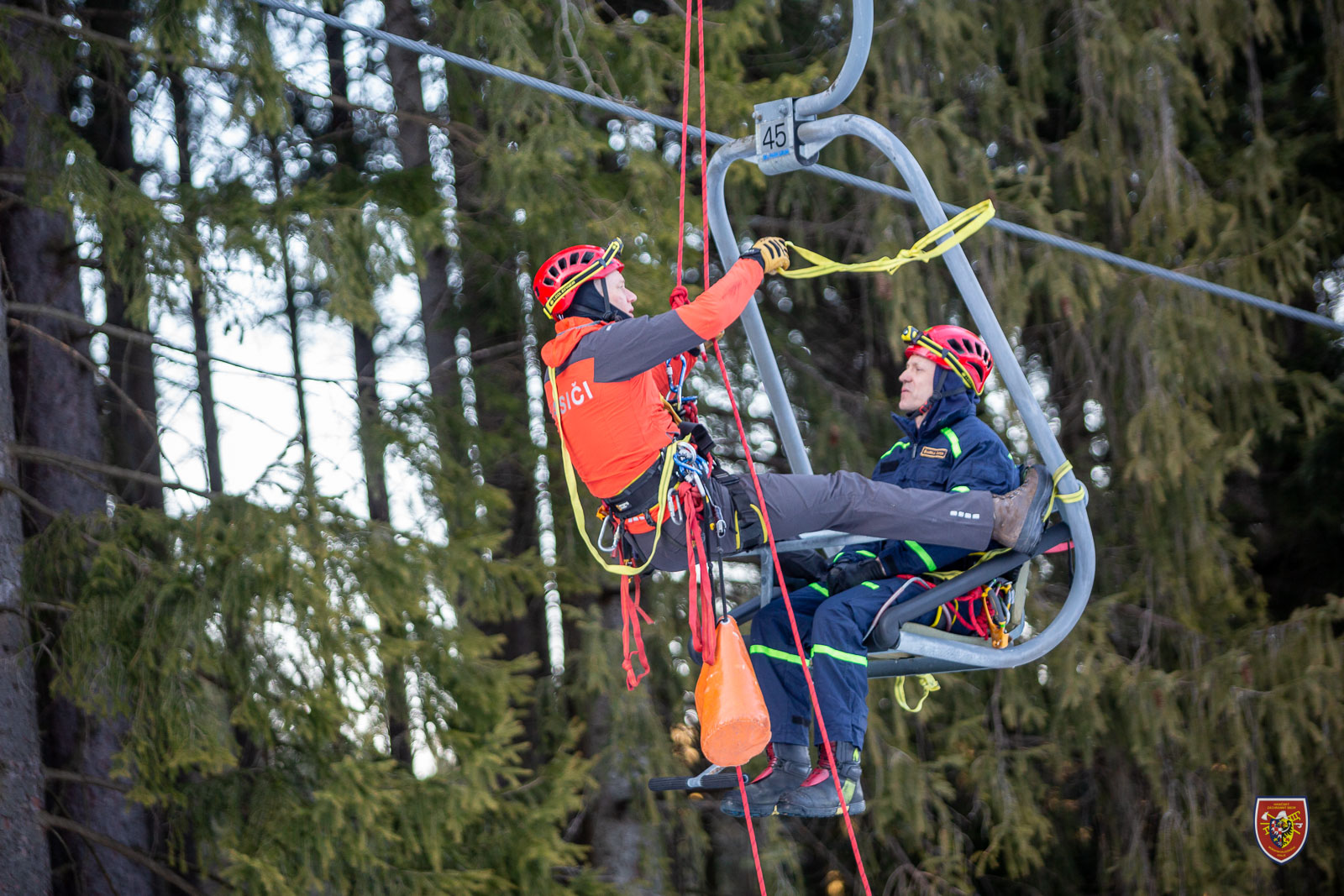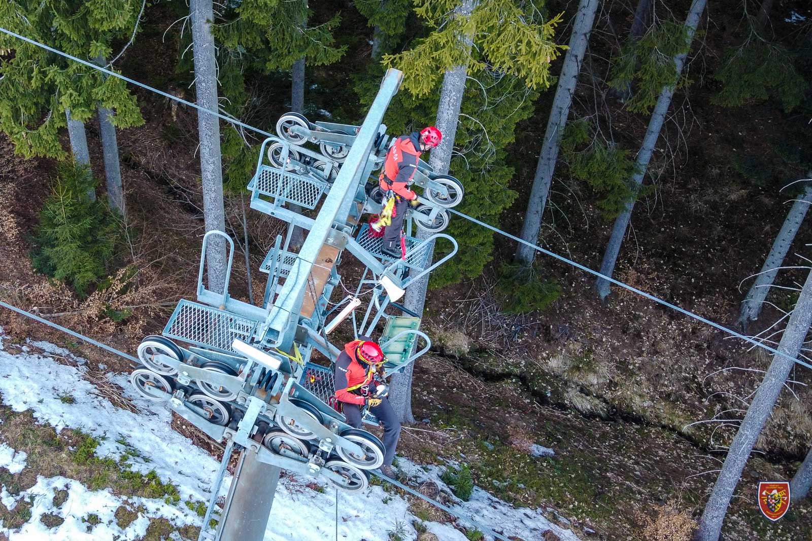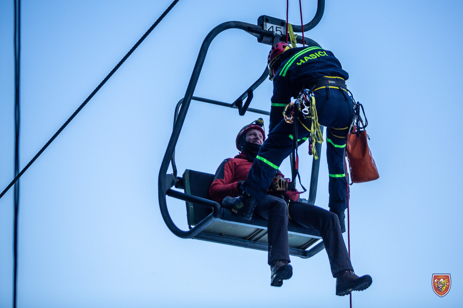 V pondělí 21. března 2022 odpoledne nacvičovali členové lezecké skupiny Hasičského záchranného sboru Moravskoslezského kraje (HZS MSK) z Frýdku-Místku záchranu osob ze sedačkové lanovky ve Ski Parku Gruň.
