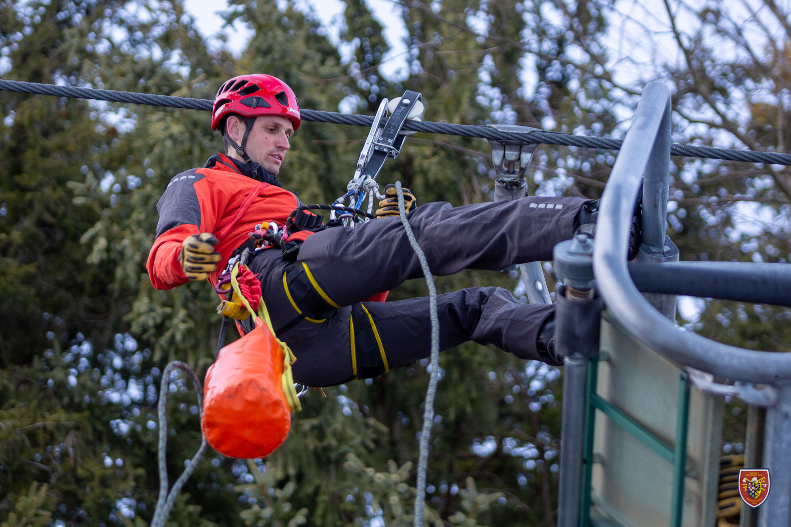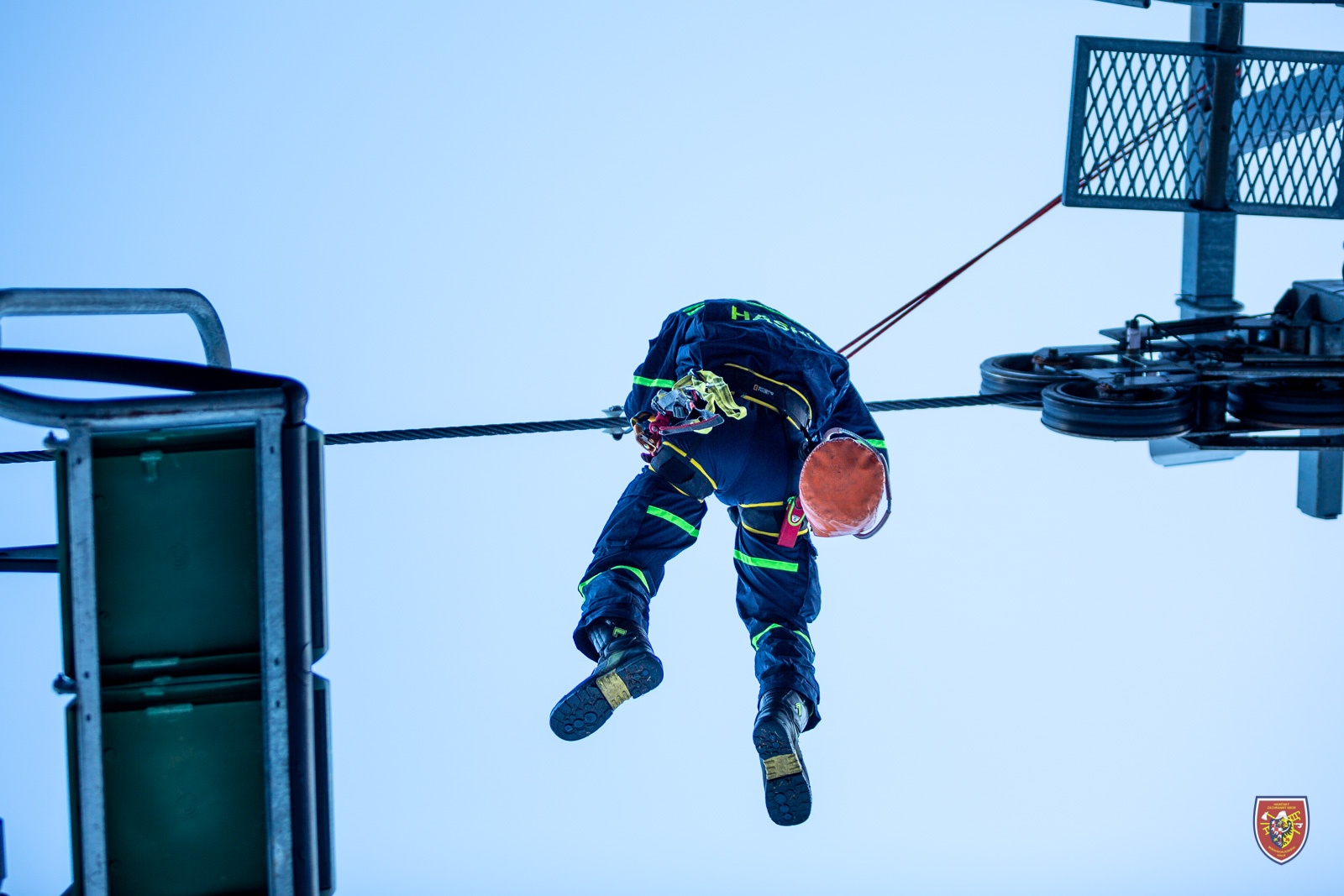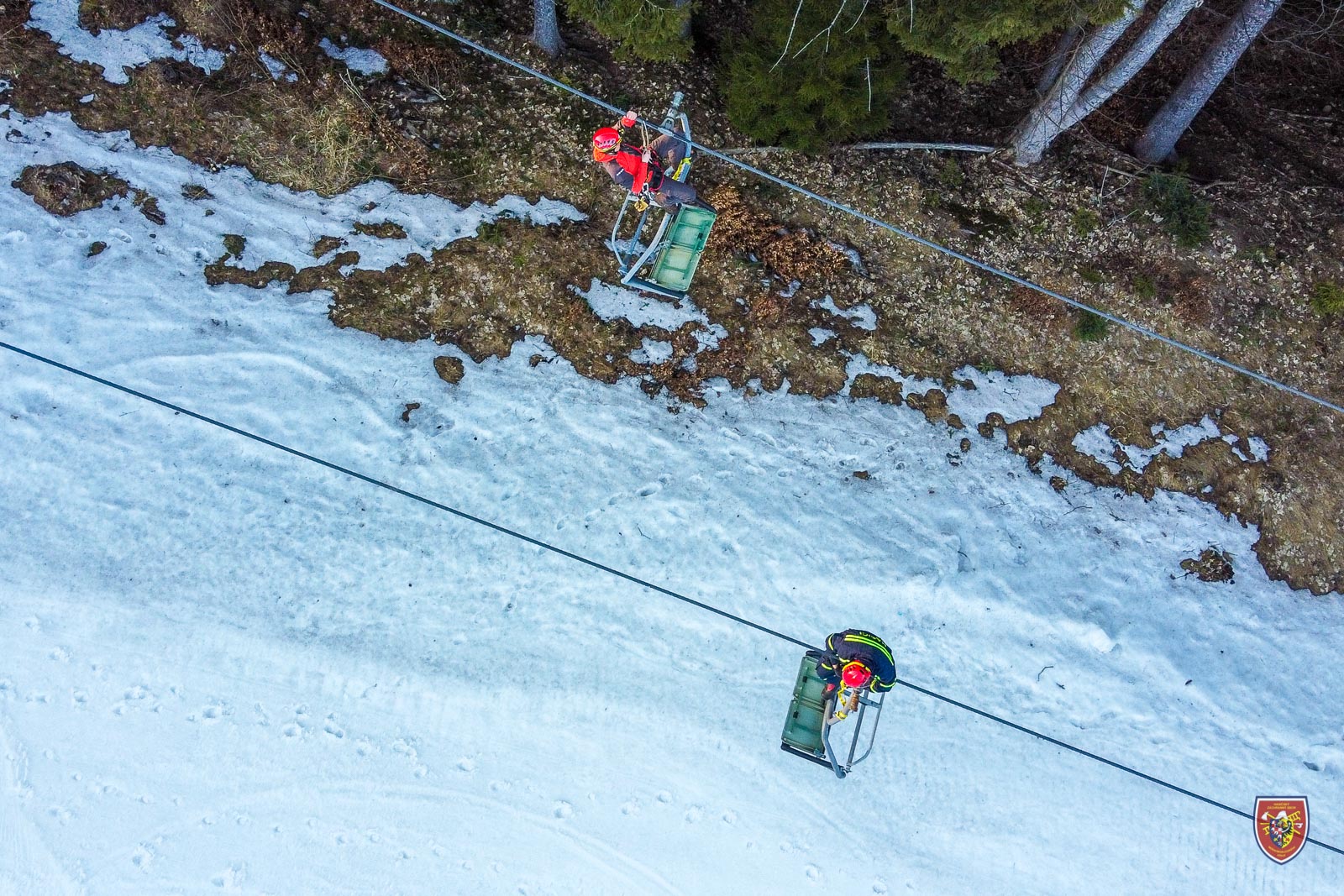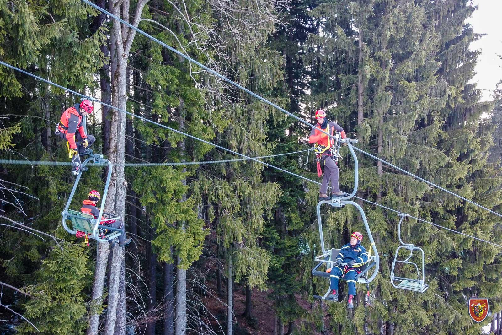 V pondělí 21. března 2022 odpoledne nacvičovali členové lezecké skupiny Hasičského záchranného sboru Moravskoslezského kraje (HZS MSK) z Frýdku-Místku záchranu osob ze sedačkové lanovky ve Ski Parku Gruň.