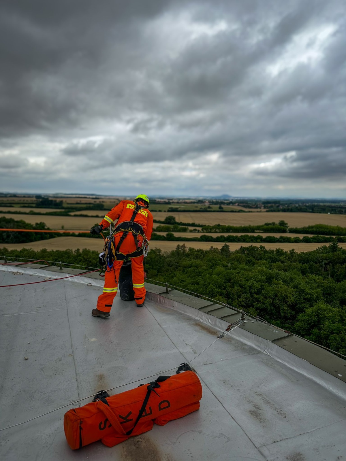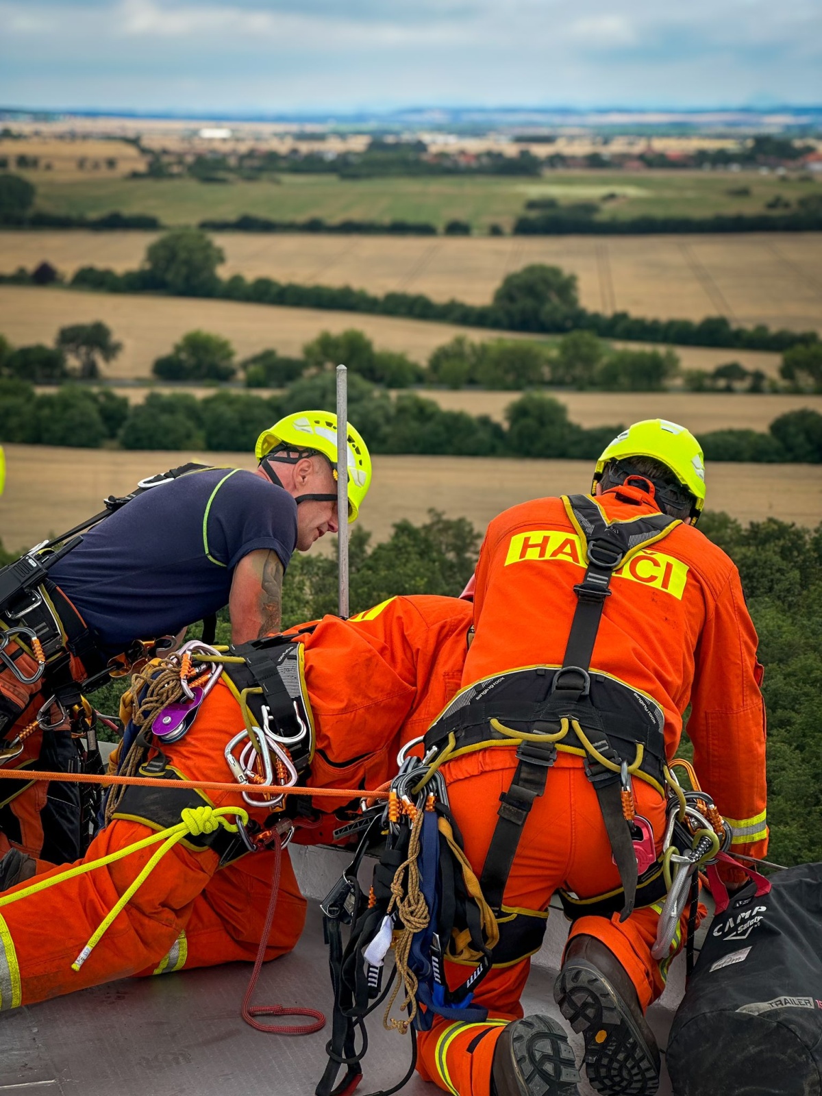 Při údržbě věžového vodojemu v blízkosti obce Kojetice se jednomu z techniků udělalo nevolno – to byl námět prověřovacího cvičení...