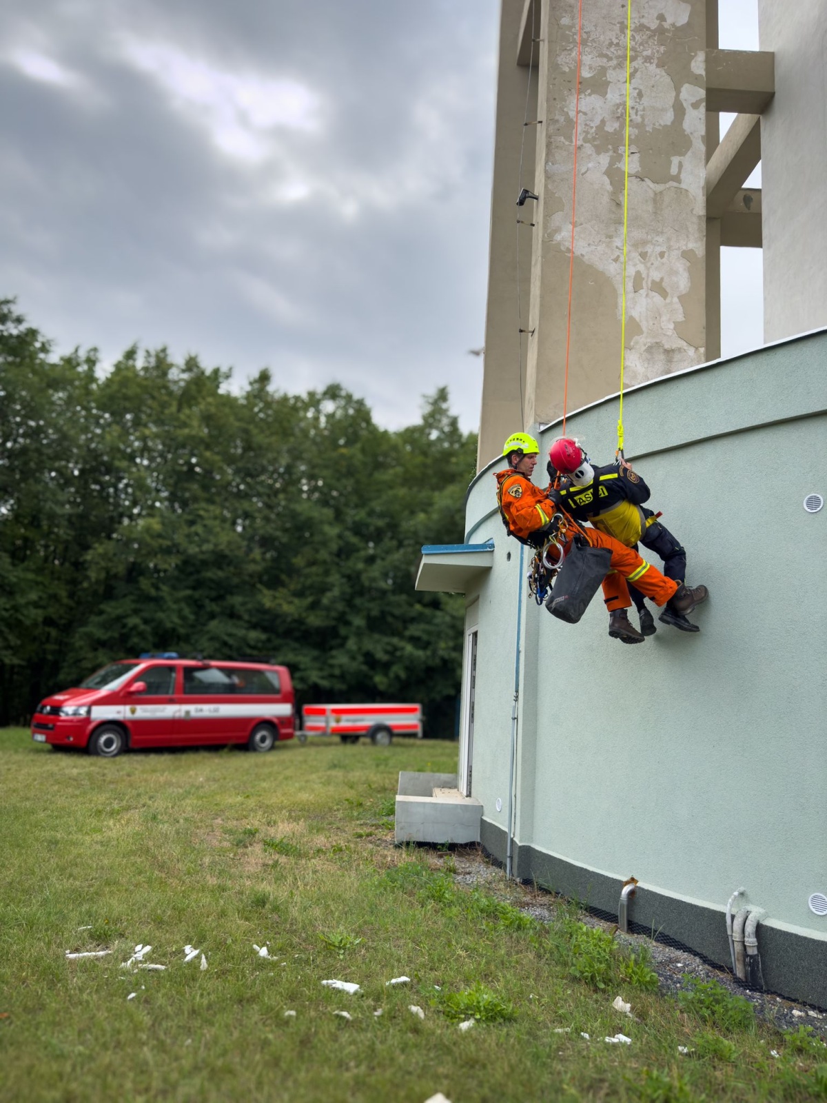 Na místo proto vyrazili hasiči, kteří pracovníkovi vodáren nejprve poskytli předlékařské ošetření a následně ho za pomoci speciálního lezeckého vybavení bezpečně spustili po plášti věže na zem. Po úspěšné záchraně byl technik fiktivně předán zdravotnické záchranné službě. Cvičení mělo za cíl prověřit připravenost hasičů na záchranu osob z výškových objektů a jejich schopnost spolupracovat při mimořádných událostech.