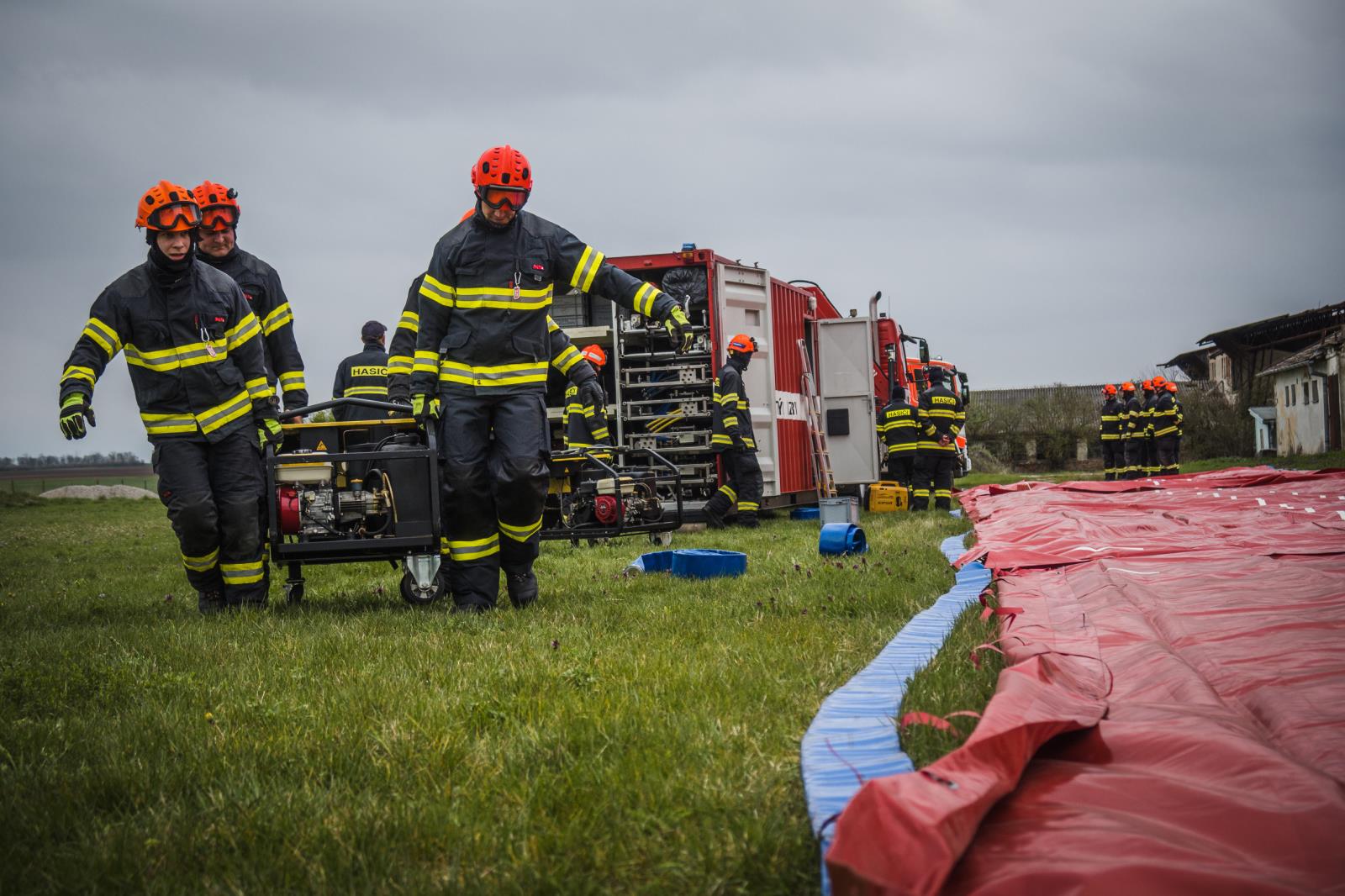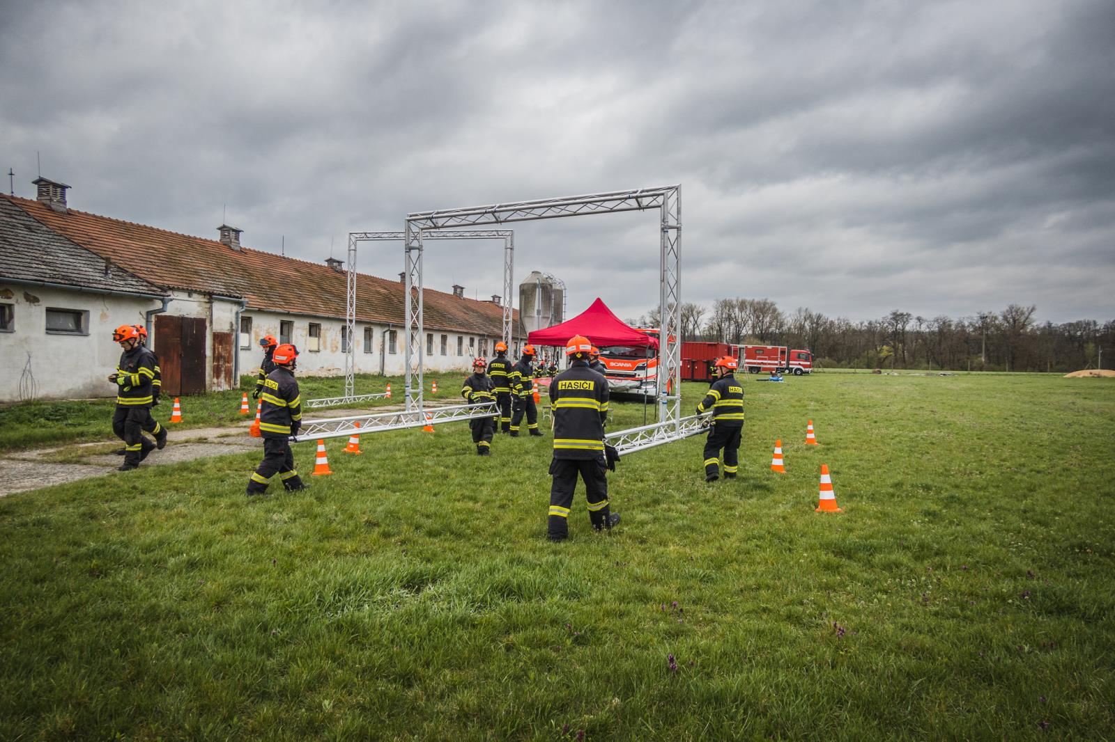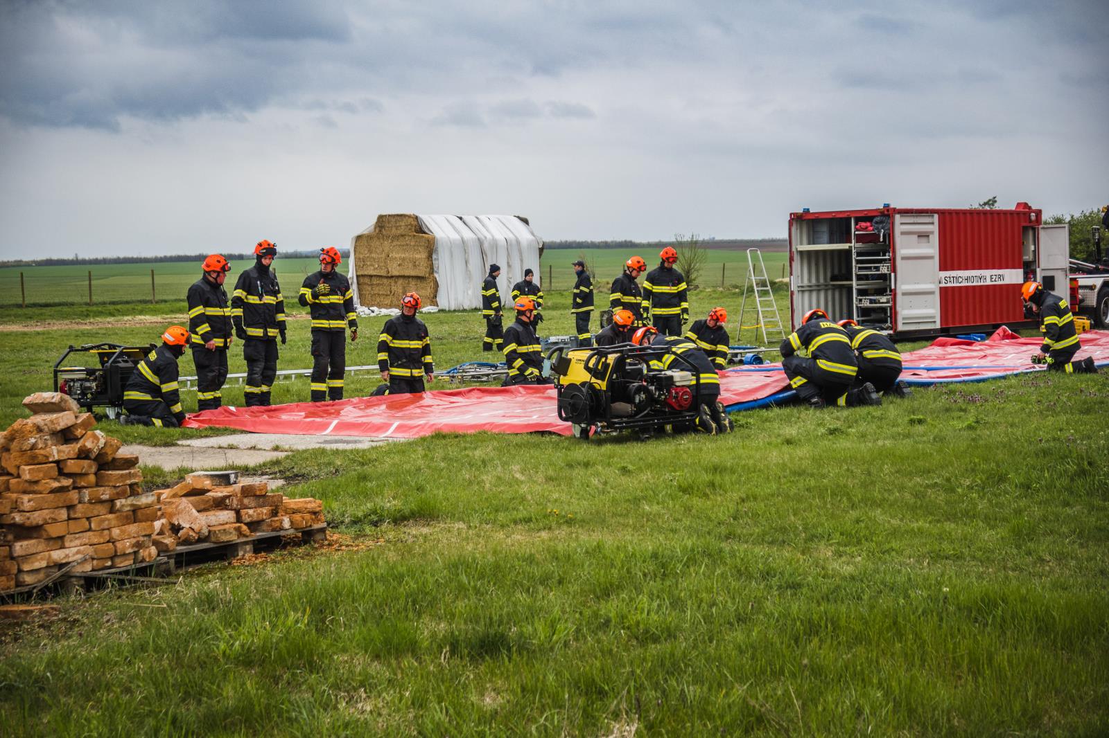 Po shromáždění sil a prostředků v areálu zemědělského družstva představil velitel přítomným celý prostor a jeho zamýšlené rozvržení. Prostor byl rozdělen na pět stanovišť: