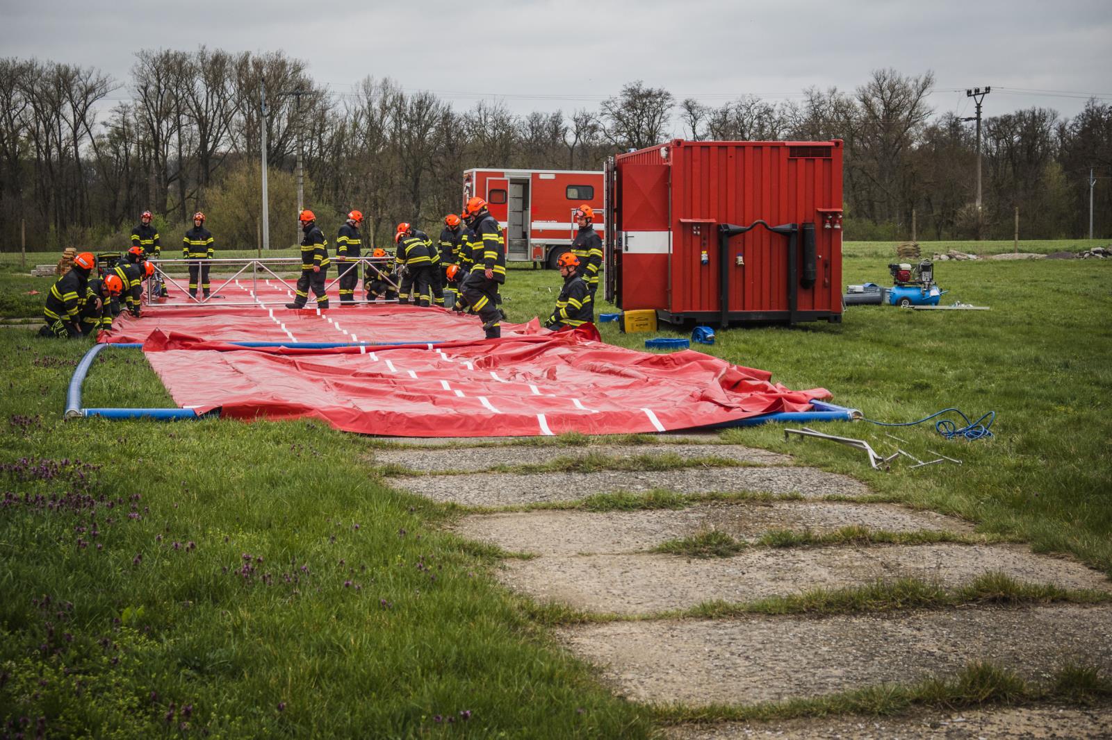 Mimo ověření vhodnosti nového místa dekontaminace bylo nutné efektivně celý prostor rozvrhnout a prakticky ověřit. Účelem akce tedy nebylo testovat technologii či správnost postupů při samotné výstavbě.