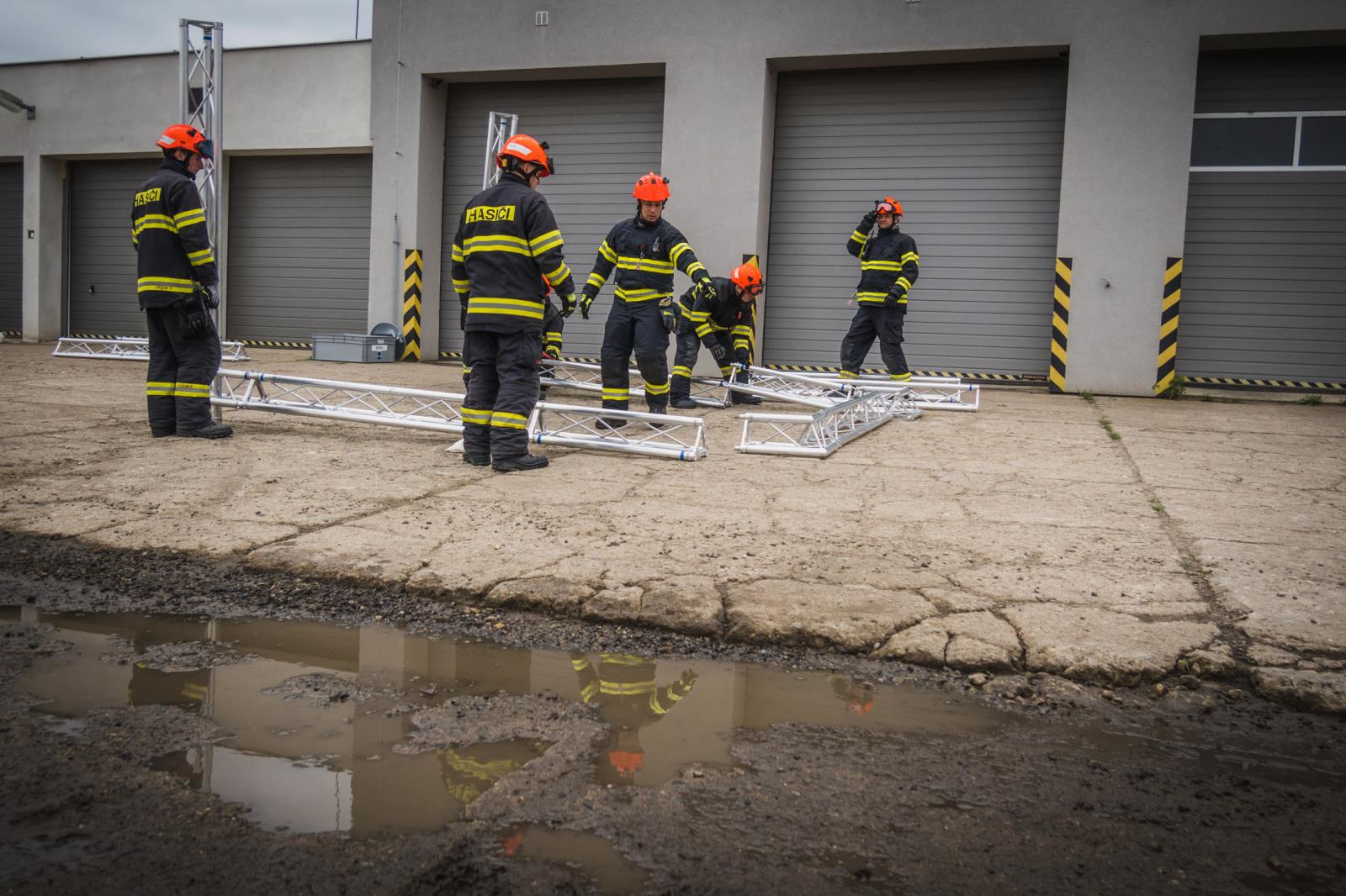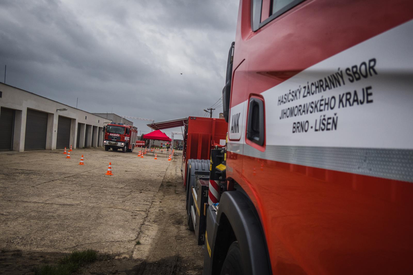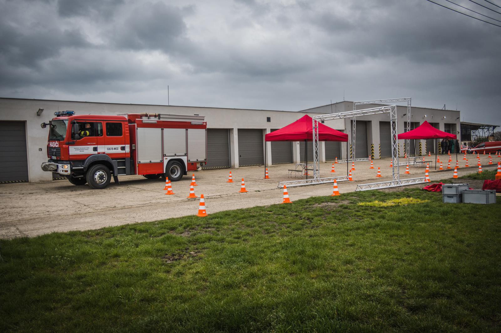 Veškerá nutná technika pro výcvik se shromáždila na hasičské stanici Brno-Líšeň. Odtud kolona hasičských vozidel vyrazila v doprovodu Policie ČR na místo určení.
