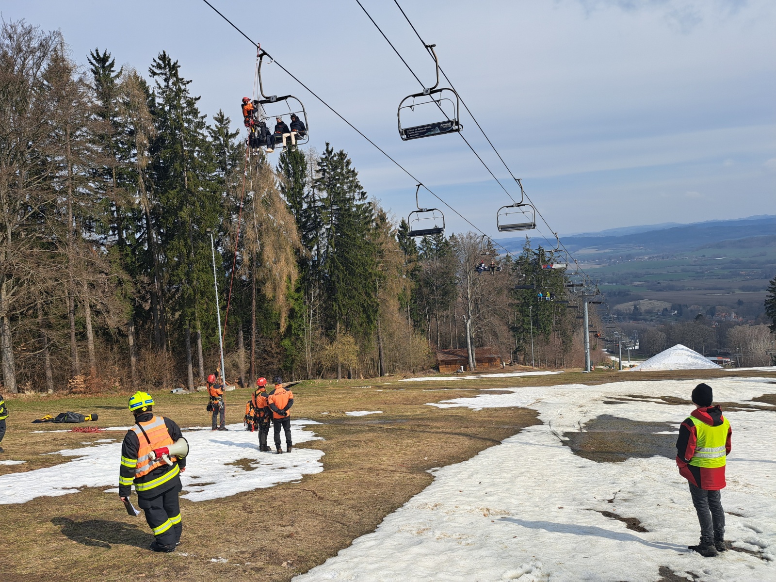 Ve Ski areálu Monínec na Příbramsku se ve středu 2. dubna odehrálo rozsáhlé taktické cvičení hasičských jednotek zaměřené na záchranu osob uvízlých na lanové dráze. Na místo dorazilo třicet profesionálních i dobrovolných hasičů, kteří si pod vedením zkušených lezců vyzkoušeli složitý zásah v extrémních podmínkách. Scénář simuloval náhlou poruchu lanovky, která zůstala stát s desítkami cestujících vysoko nad zemí.