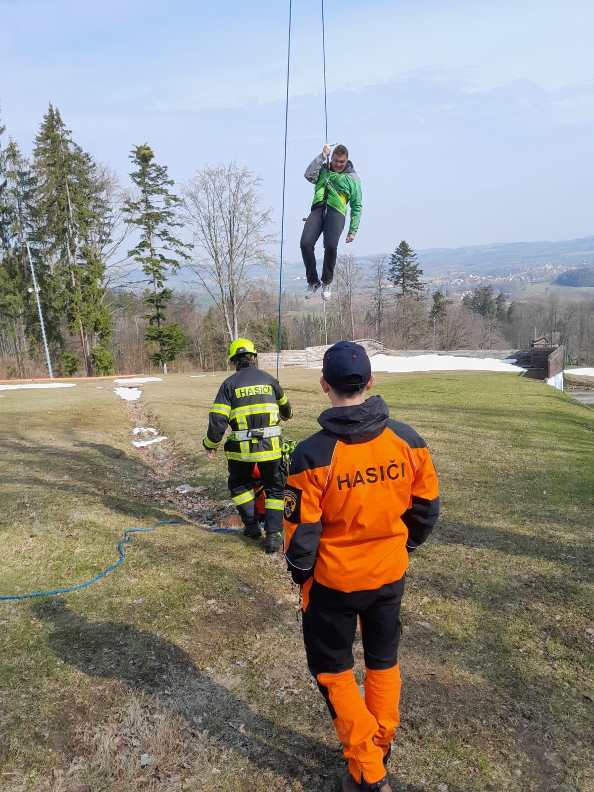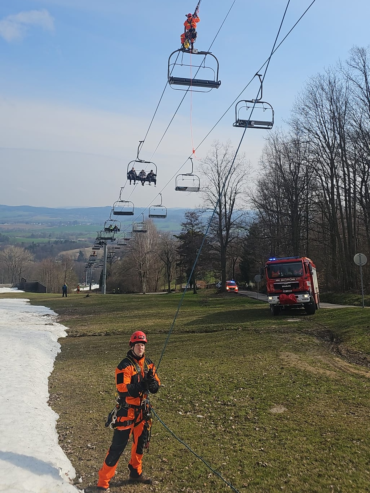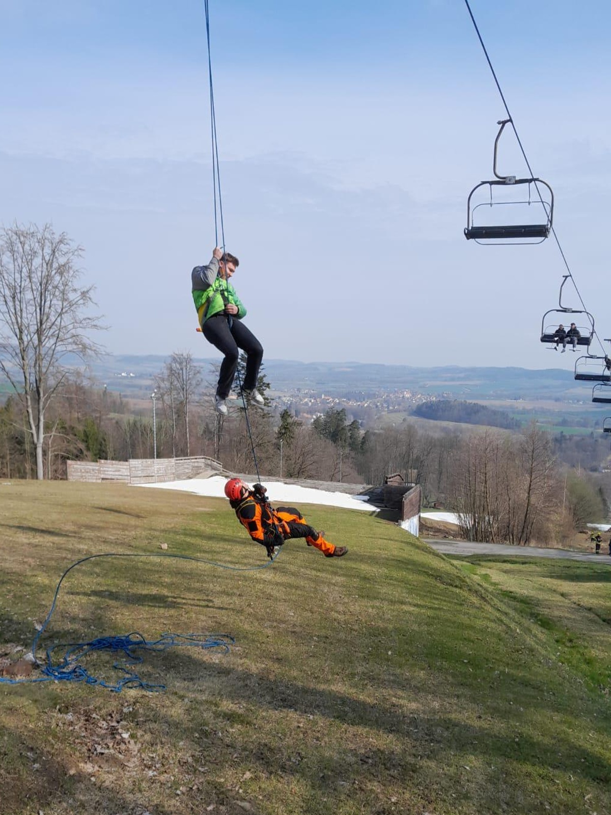 Záchrana osob z lanové dráhy není běžný zásah – vyžaduje speciální výcvik, zkušenosti i pevné nervy. Do cvičení se zapojily lezecké skupiny Hasičského záchranného sboru Středočeského kraje z Příbrami a Benešova, stejně jako specialisté z jihočeského Tábora.