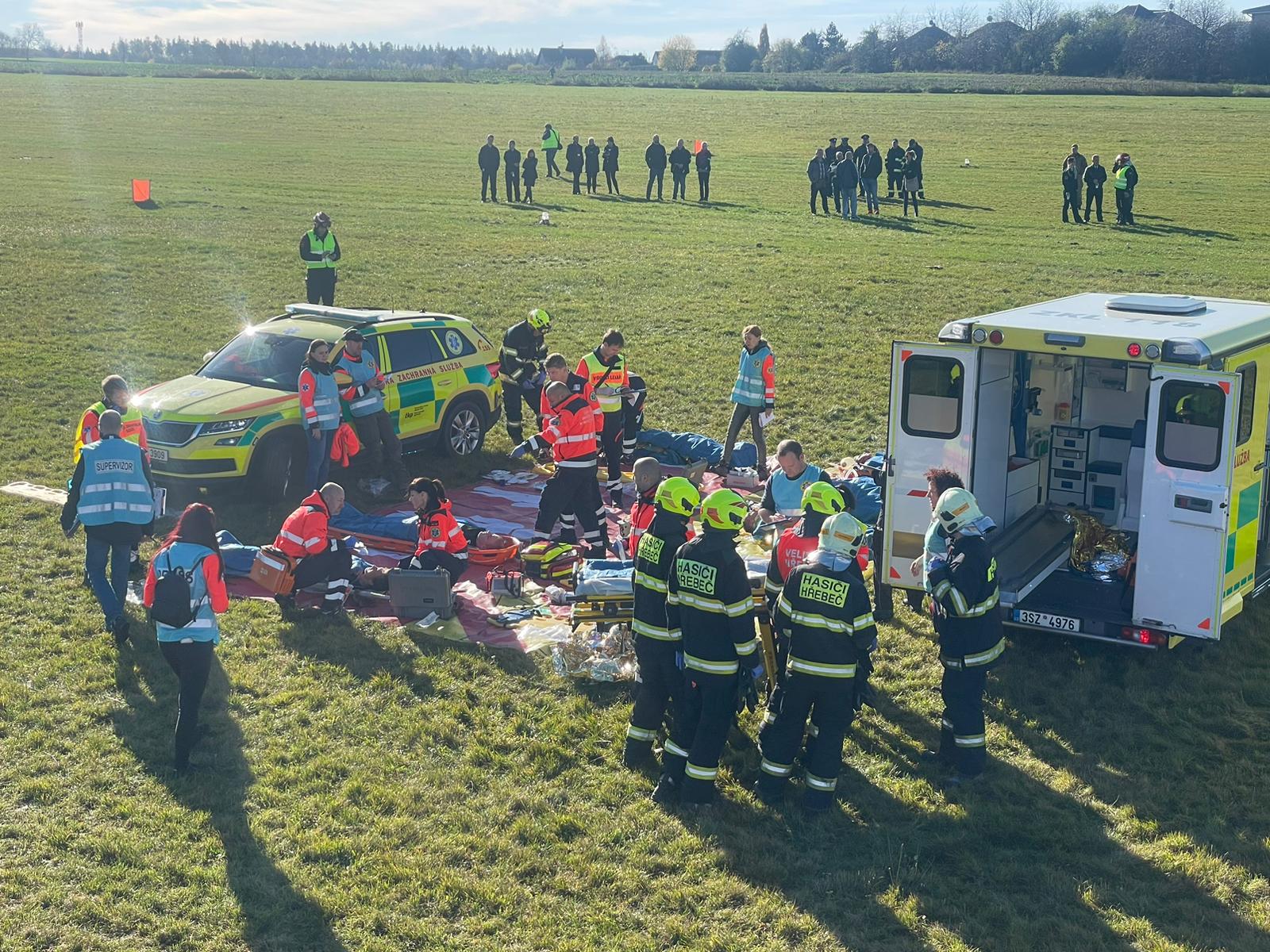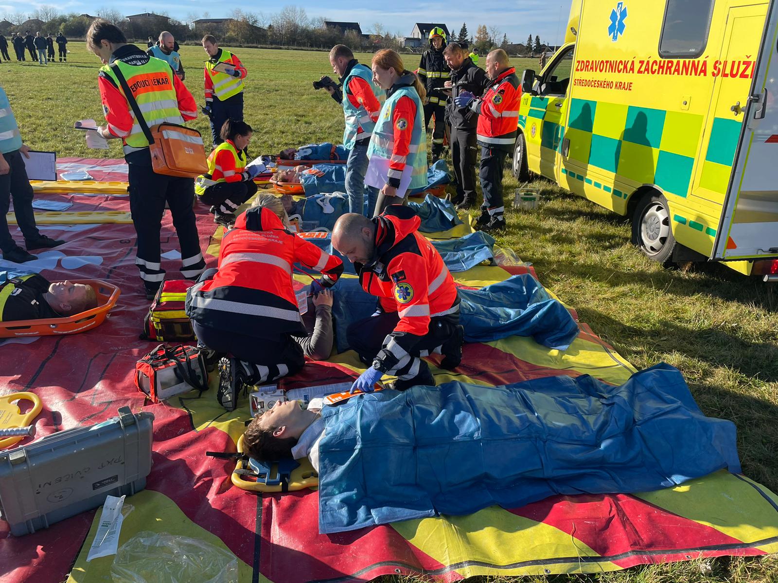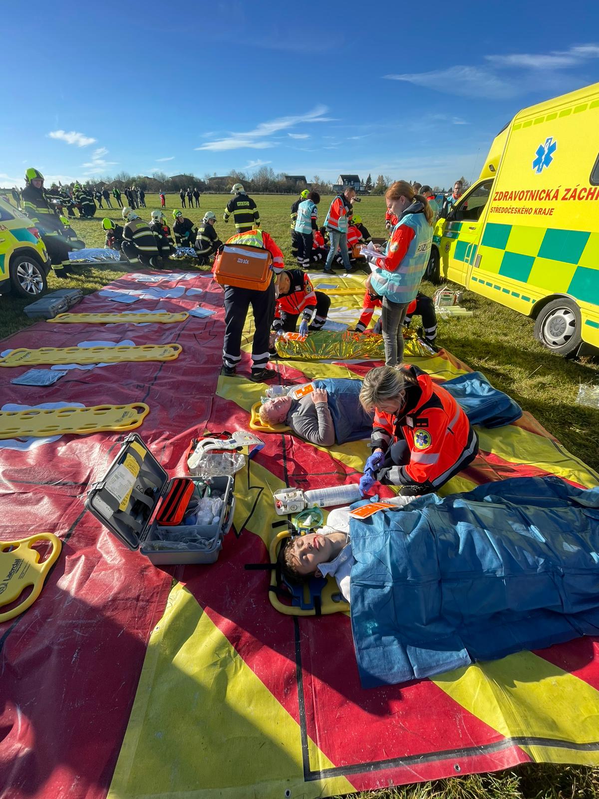 V úterý 8. listopadu se na sportovním letišti u obce Velká Dobrá nedaleko Kladna uskutečnilo taktické cvičení složek integrovaného záchranného systému zaměřené na záchranu většího počtu zraněných osob po pádu malého letadla do davu diváků.