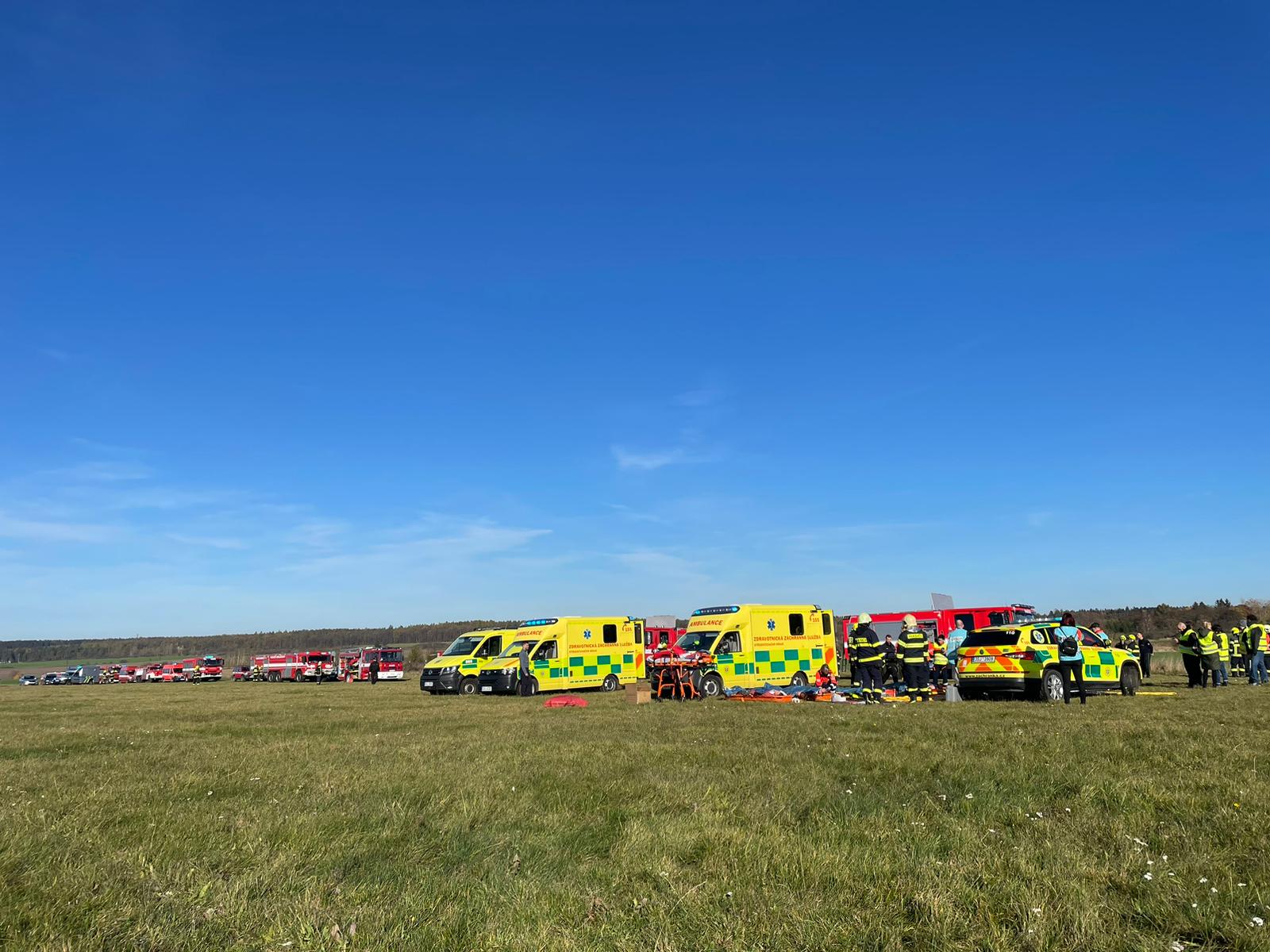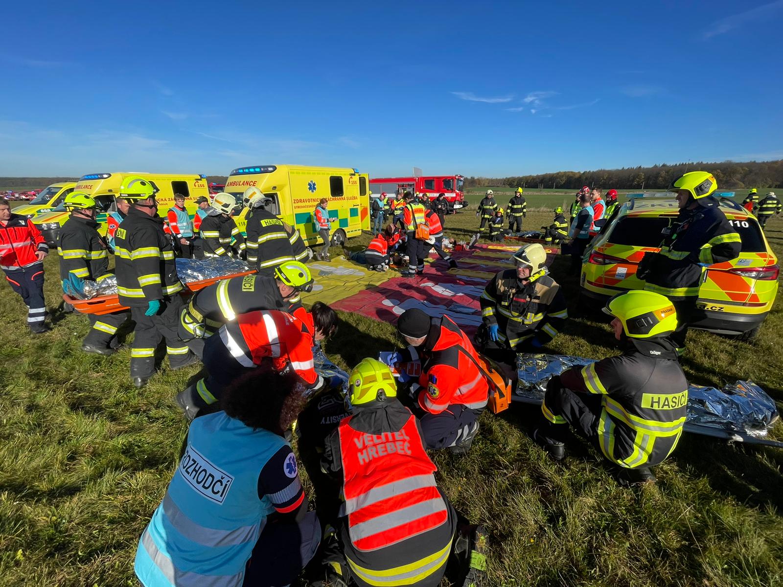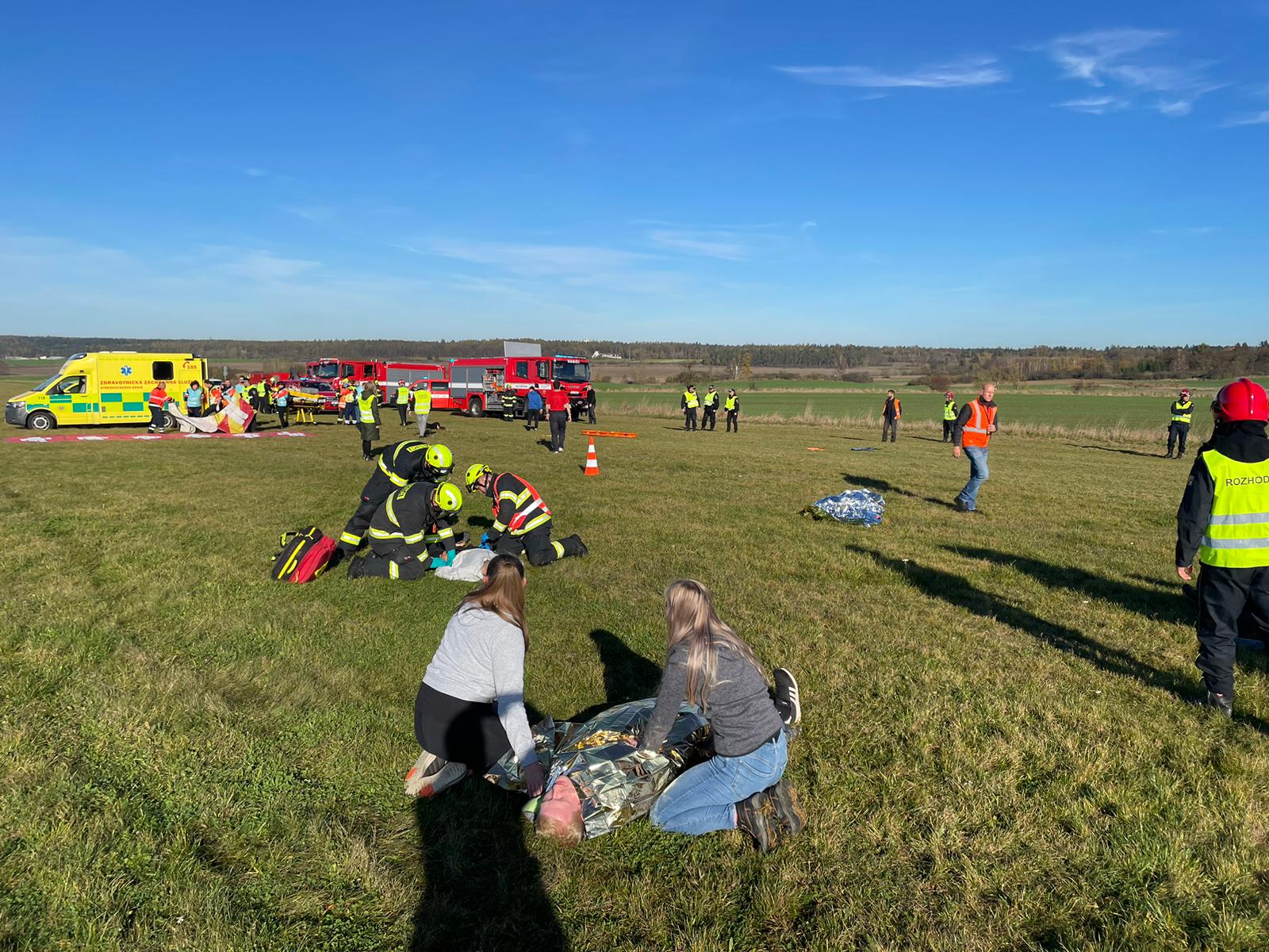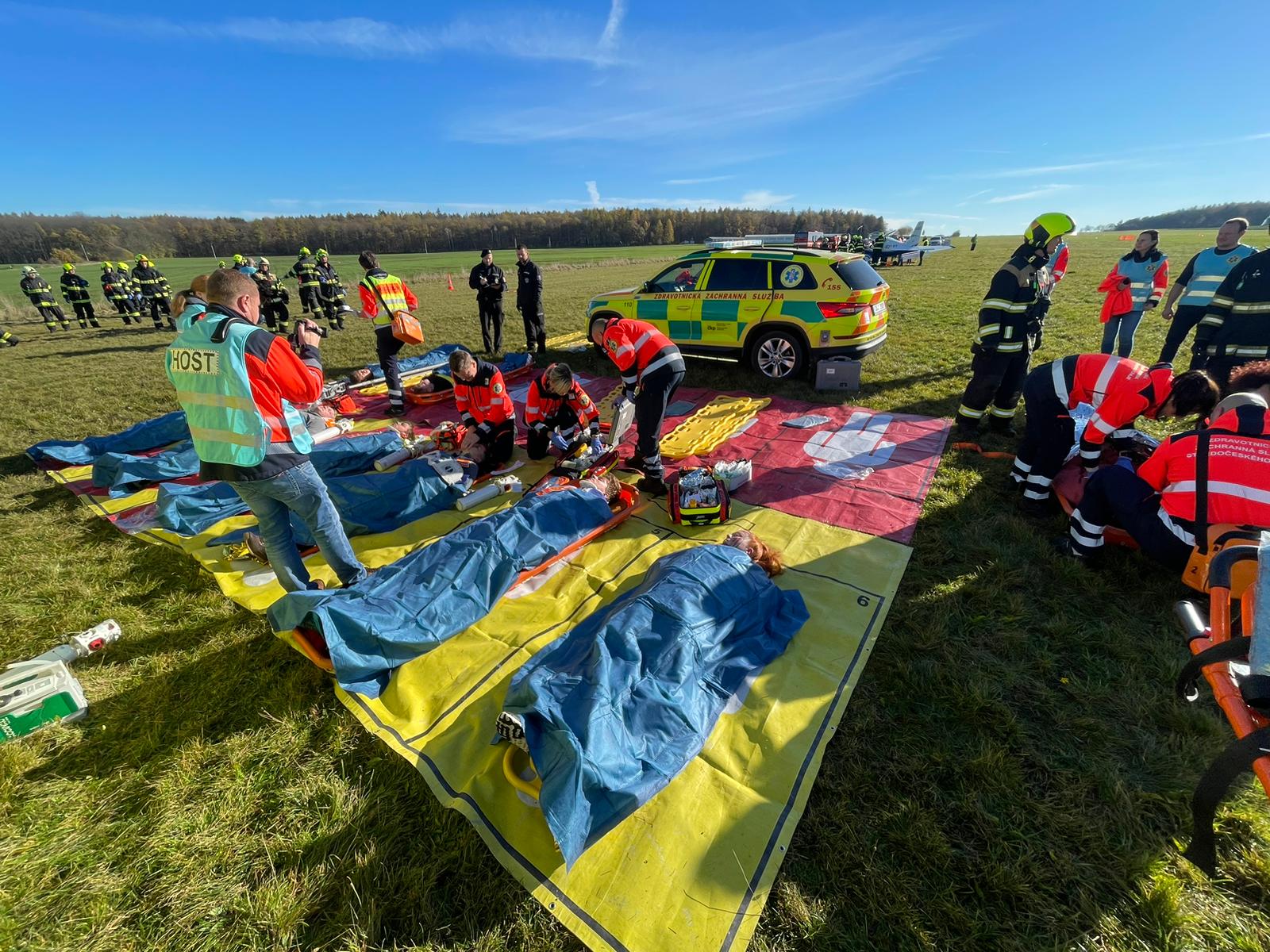 V úterý 8. listopadu se na sportovním letišti u obce Velká Dobrá nedaleko Kladna uskutečnilo taktické cvičení složek integrovaného záchranného systému zaměřené na záchranu většího počtu zraněných osob po pádu malého letadla do davu diváků.