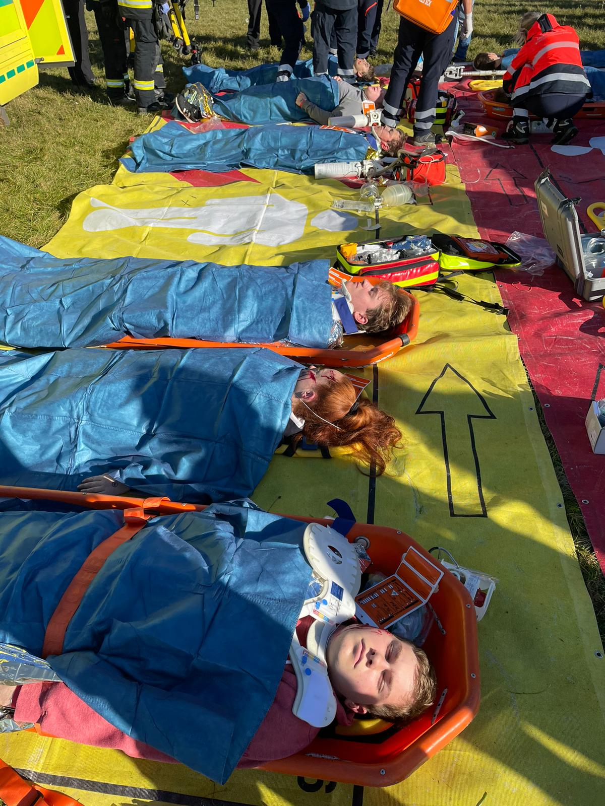 Tímto způsobem bylo vytříděno celkem 24 figurantů ze SOŠ a SOU Kladno – Dubská. O jejich namaskování se postarali členové Českého červeného kříže ve spolupráci se zdravotnickou záchrannou službou. Podle přítomných svědků bylo postrádáno ještě dalších pět osob, které zřejmě v šoku utekly do lesa poblíž letiště. Policie ČR za asistence strážníků Městské policie Kladno zahájila pátrací akci a pomocí rojnice a dronu všechny pohřešované osoby nalezla a předala je zdravotníkům. O nezraněné účastníky leteckého dne se starali také členové týmu posttraumatické péče HZS Středočeského kraje.