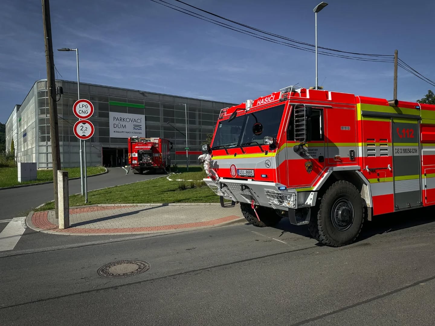 V pátek 8. srpna 2025 proběhlo v parkovacím domě v Kralupech nad Vltavou taktické cvičení jednotek požární ochrany, zaměřené na zásah u požáru hybridního vozidla. Scénář simuloval reálnou situaci, kdy je automobil zaparkován ve třetím nadzemním podlaží objektu, v jeho rezidenční části.