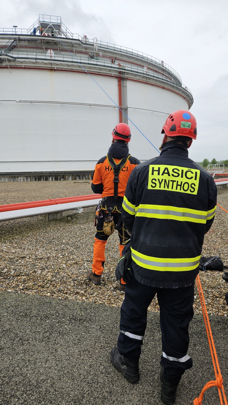 Na výcviku se vedle mělnických lezců podíleli i zkušení kolegové z podnikového hasičského záchranného sboru společnosti Synthos. Právě díky této spolupráci mohli účastníci trénovat mezioborovou součinnost a sladění postupů v náročných situacích. Velké poděkování patří společnosti MERO ČR za umožnění výcviku v tomto specifickém a velmi cenném prostředí.
