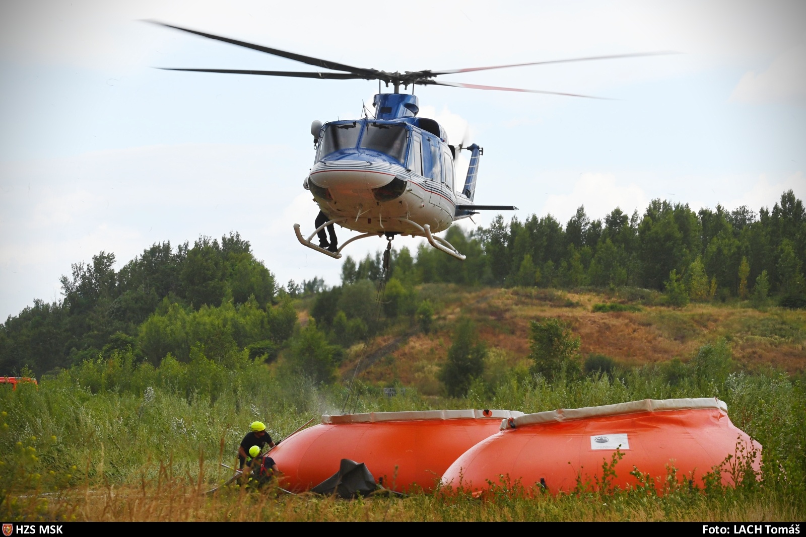 Ve středu 28. června 2023 nacvičovali hasiči z Hasičského záchranného sboru Moravskoslezského kraje (HZS MSK) a Záchranného útvaru Hasičského záchranného sboru České republiky (ZÚ) na Haldě v Hrabůvce letecké hašení s využitím mobilních velkoobjemových nádrží.