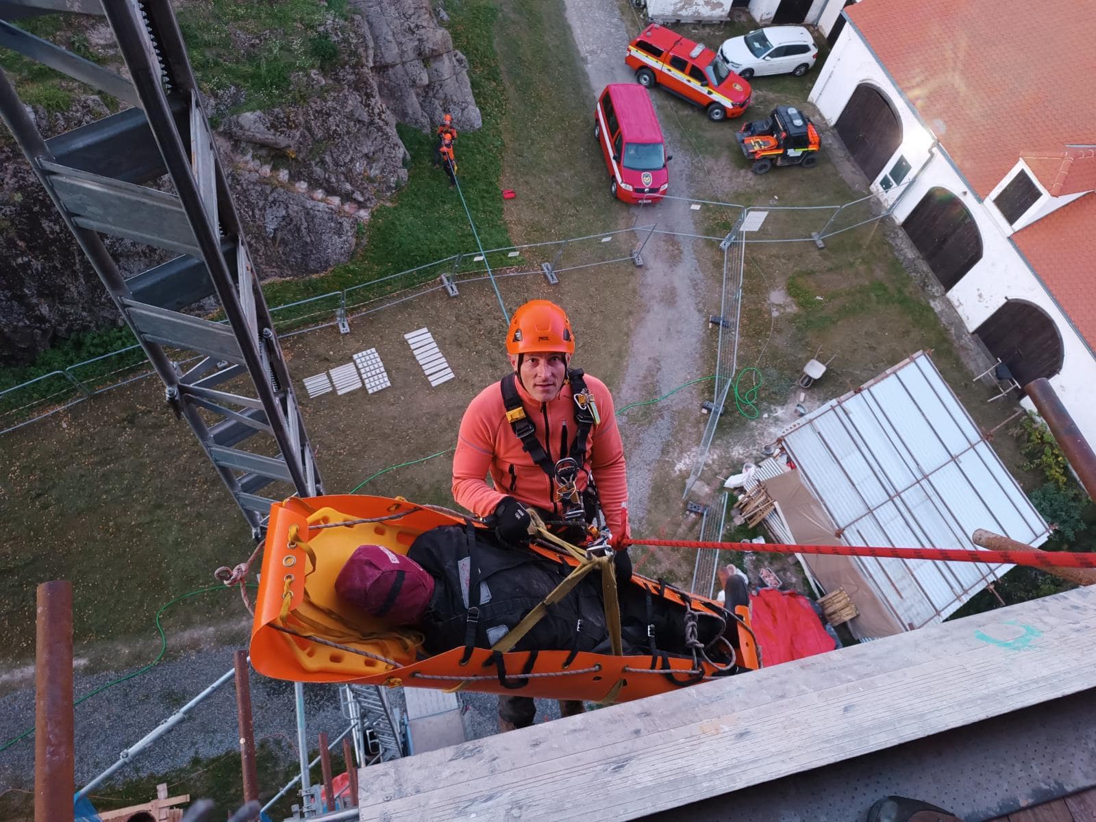 Na plumlovském zámku si hasiči vyzkoušeli záchranu dělníka z lešení pomocí lanové techniky. Akce probíhala v simulovaných podmínkách, které odpovídají skutečným zásahům v historických objektech. Další tým zasahoval na přepadu hráze vodní nádrže Plumlov, kde bylo nutné zraněného turistu vyprostit pomocí lanového traverzu.