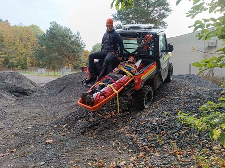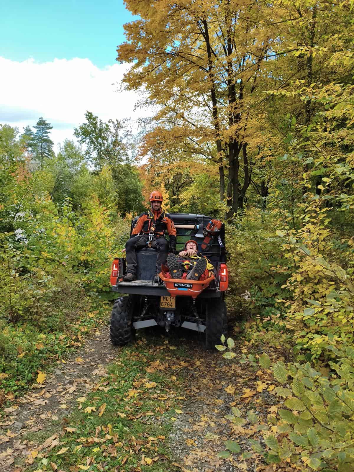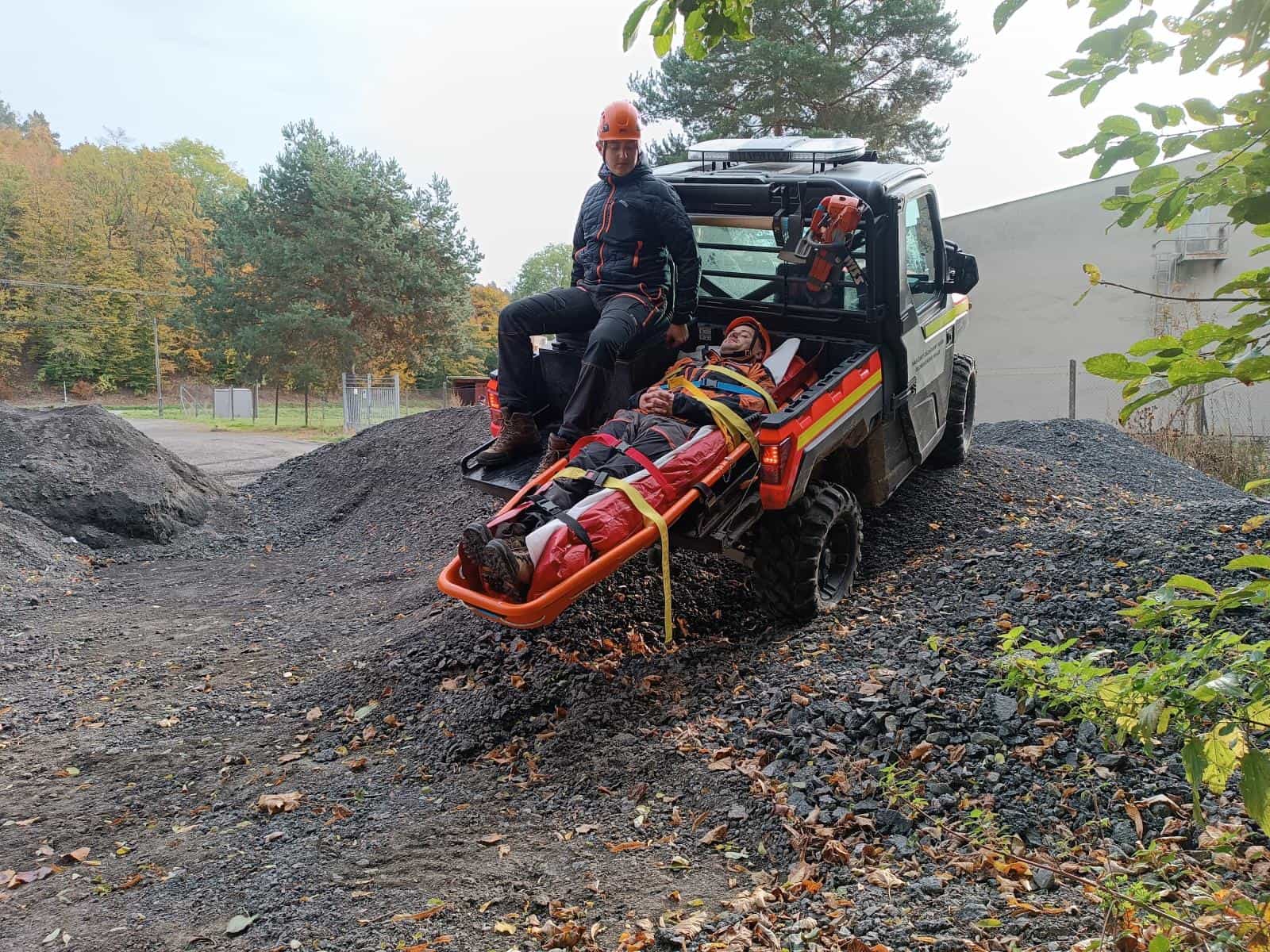 V Křenůvkách čekala hasiče řada realistických scénářů – například pomoc pořezanému arboristovi, vyproštění paraglidisty uvízlého ve větvích nebo transport zraněné osoby z těžko přístupného terénu. Hasiči při tom testovali novou nástavbu pro čtyřkolku POLARIS, která umožňuje bezpečné upevnění nosítek i převoz zachraňovaného v náročném prostředí.