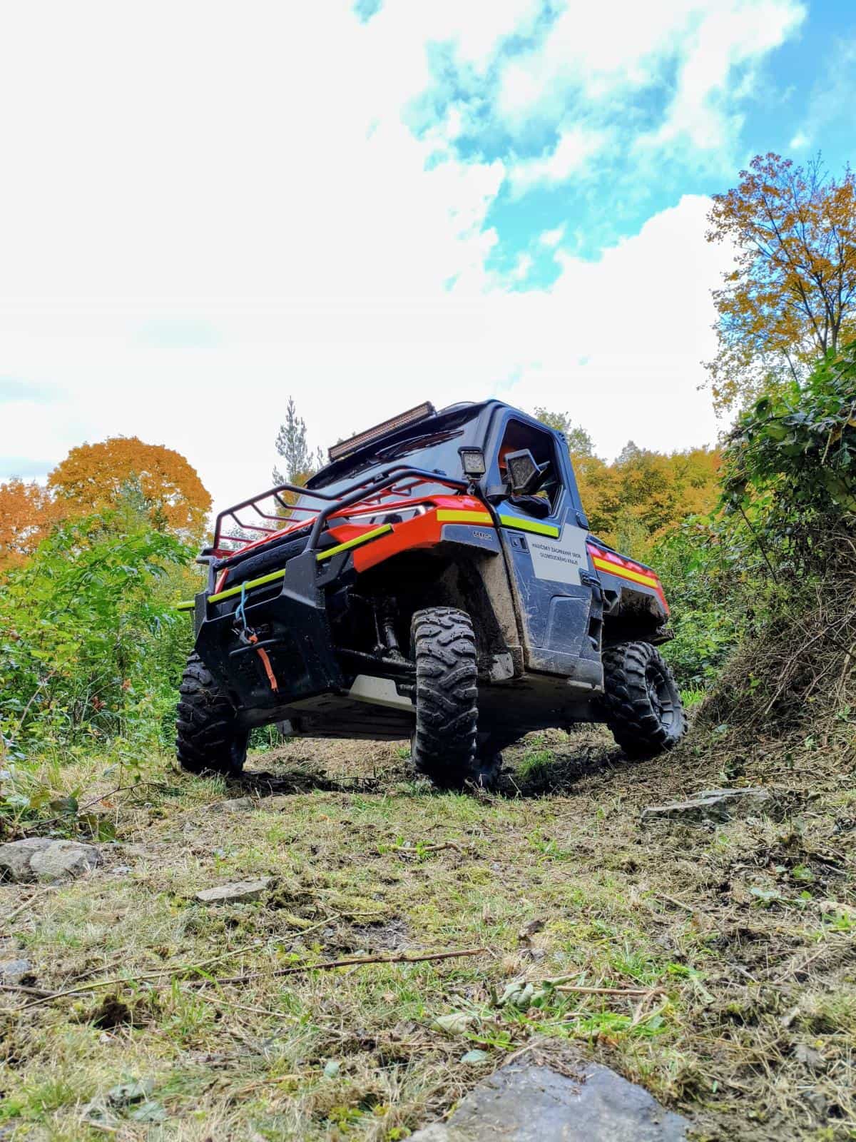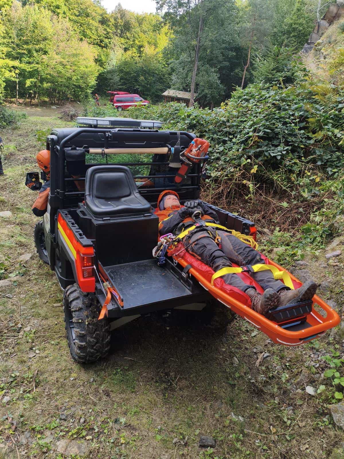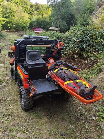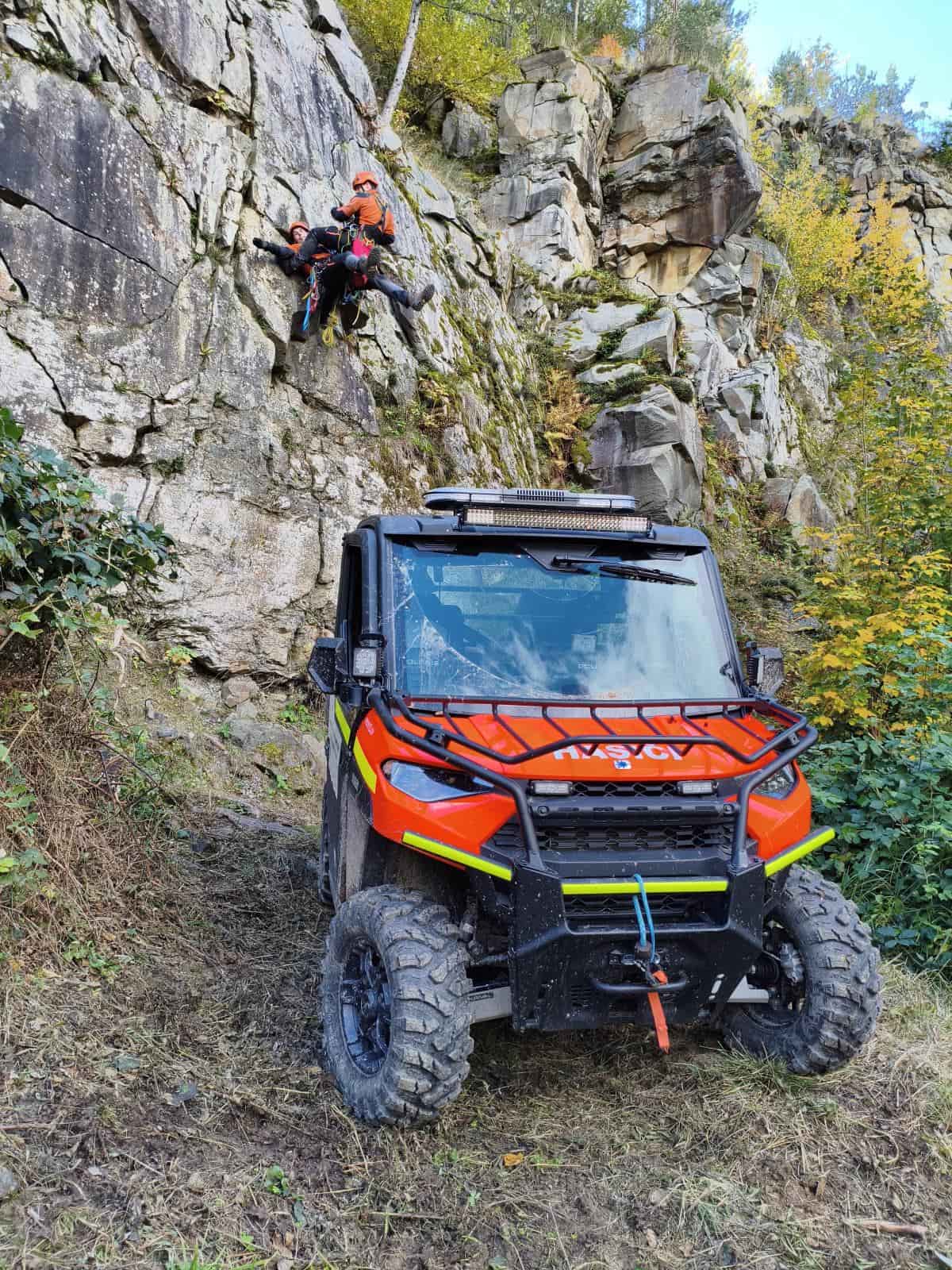 V Křenůvkách čekala hasiče řada realistických scénářů – například pomoc pořezanému arboristovi, vyproštění paraglidisty uvízlého ve větvích nebo transport zraněné osoby z těžko přístupného terénu. Hasiči při tom testovali novou nástavbu pro čtyřkolku POLARIS, která umožňuje bezpečné upevnění nosítek i převoz zachraňovaného v náročném prostředí.