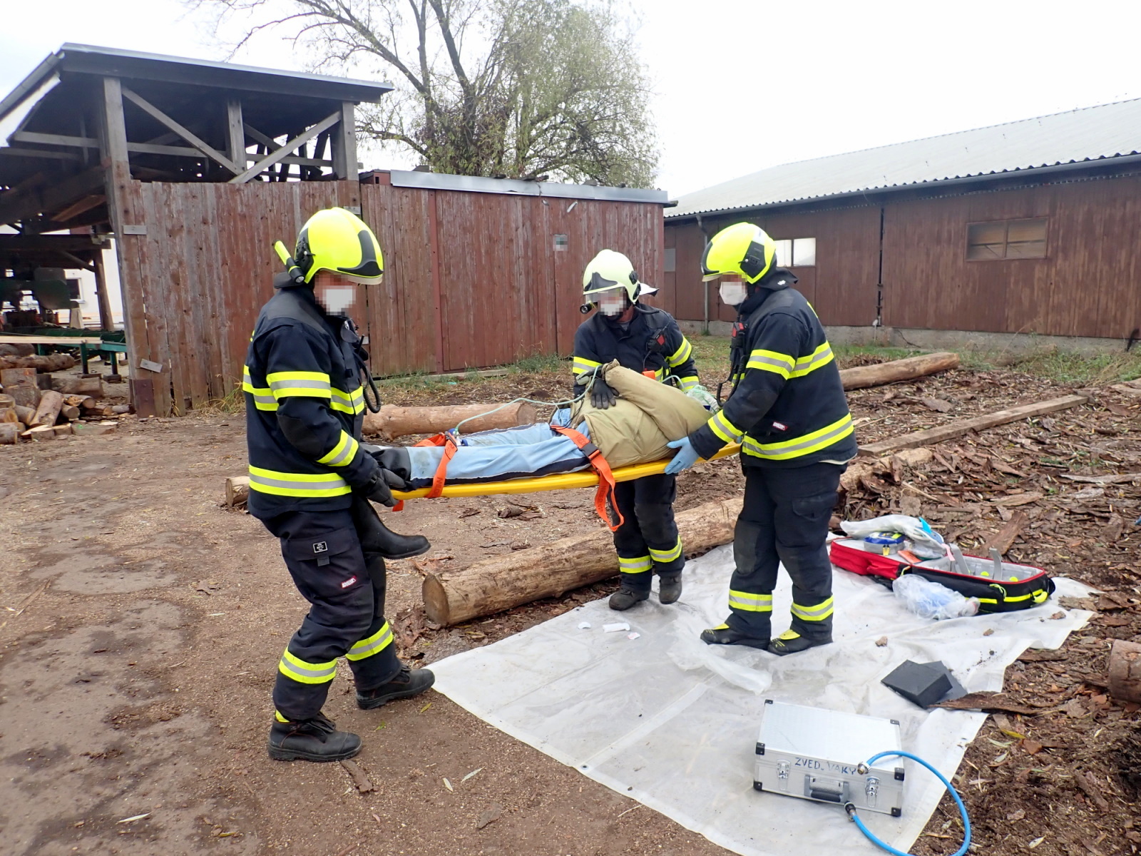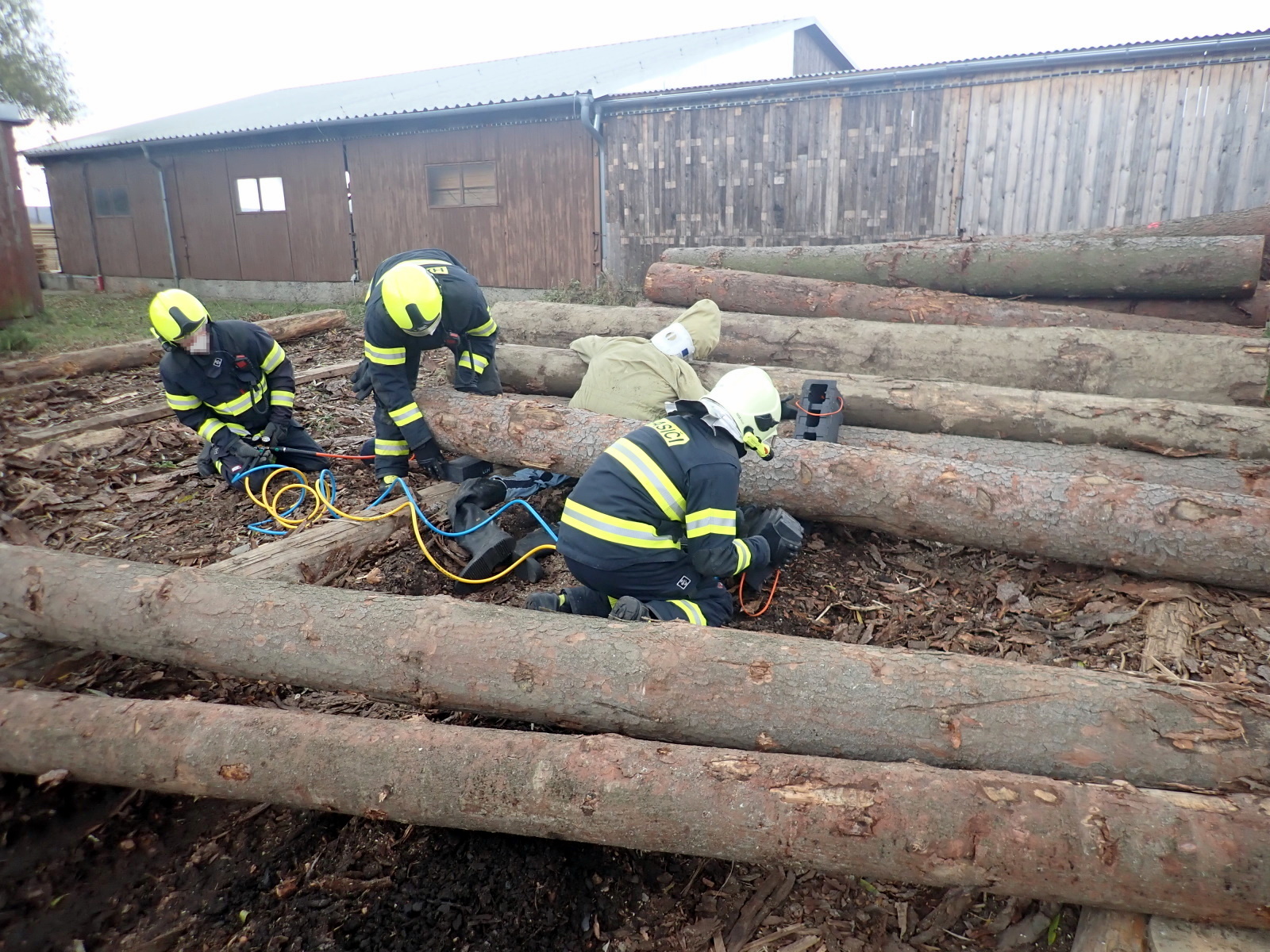 Jednotka ihned po příjezdu na místo události zajistila prostor proti dalšímu pohybu kmenů a zahájila vyproštění zraněné osoby za pomoci technických prostředků z vybavení cisternové automobilové stříkačky. Po vytažení dělníka mu byla poskytnuta první předlékařská pomoc.