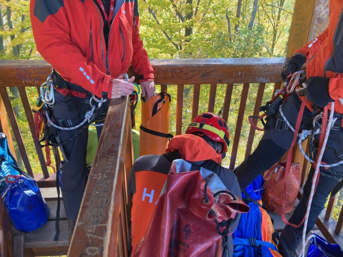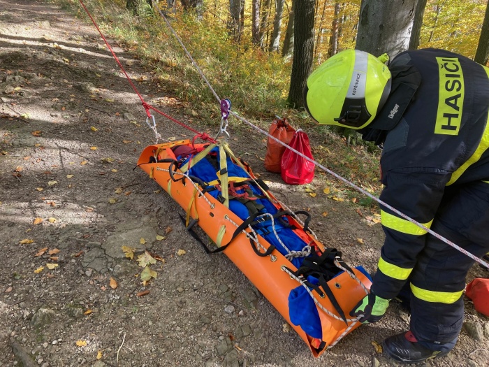 Dvě jednotky profesionálních hasičů (HZS MSK) – z Kopřivnice a Nového Jičína – se zapojily v pátek 22.10.2021 odpoledne do záchrany a transportu osoby po prodělaném infarktu z Bezručovy vyhlídky, tedy čtyřpatrové dřevěné rozhledny, která se tyčí nad městem Kopřivnice (okres Nový Jičín) nedaleko zříceniny hradu Šostýn. Naštěstí šlo pouze o taktické cvičení za nádherného podzimního počasí, zraněného člověka nahradila stejně těžká figurína.