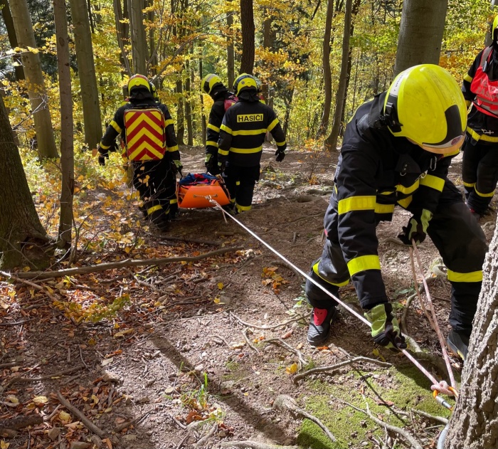 Postižené osobě poskytli kopřivničtí hasiči první předlékařskou pomoc a přichystali ji na transport. Za chvíli sem dorazila lezecká skupina – ze stanice HZS MSK v Novém Jičíně, která transportovala zraněného, uloženého v záchranných nosítkách, z vrchního patra rozhledny pomocí lanové techniky na lesní půdu. Pak ji hasiči společnými silami odnesli dolů poměrně nepřístupným terénem k místu, kam byla schopná dojet technika, tedy přes 700 metrů k parkovišti.