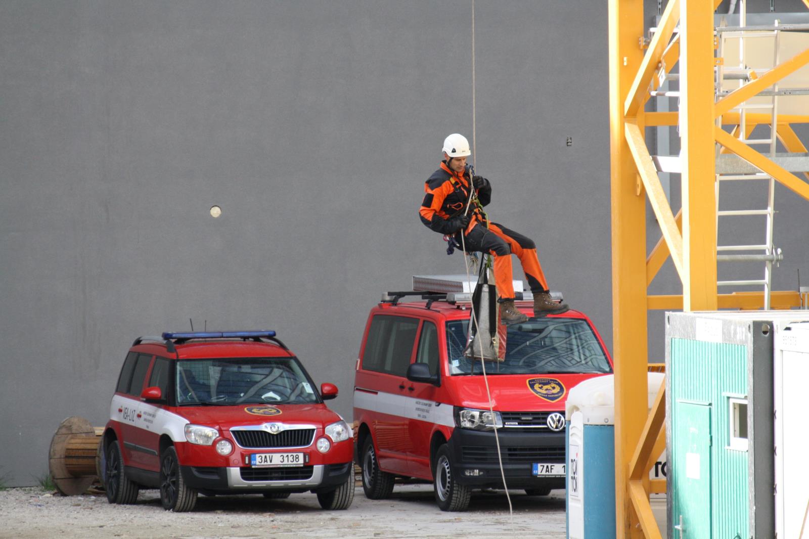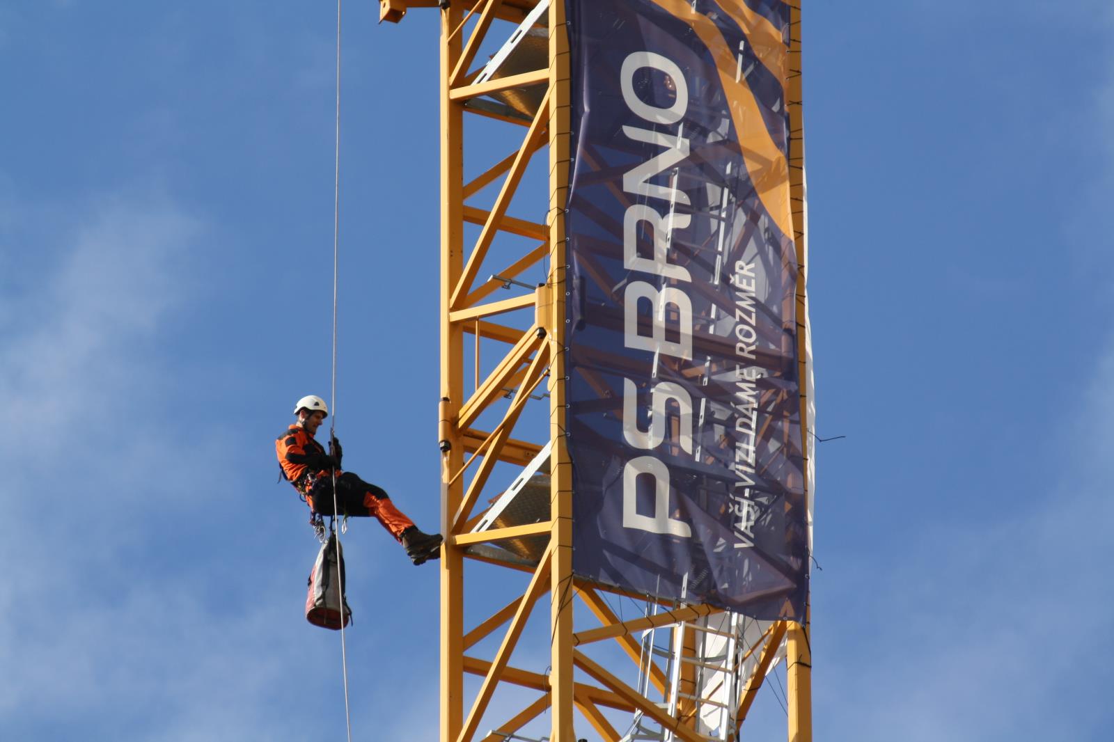 Pondělí, 31. května 2021 - Od pátku do neděle proběhl výcvik hasičů-lezců ze stanice Brno-Lidická na staveništi ulice Šumavská v Brně. K dispozici jim byl stavební jeřáb. Výcvik probíhal ve výšce 100 metrů. Bylo nutné vystoupat po žebřících na samotné rameno jeřábu s potřebnou výstrojí. Lezci měli v záměru dvě témata výcviku.