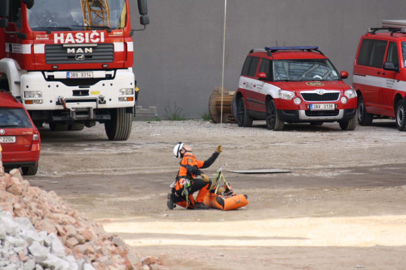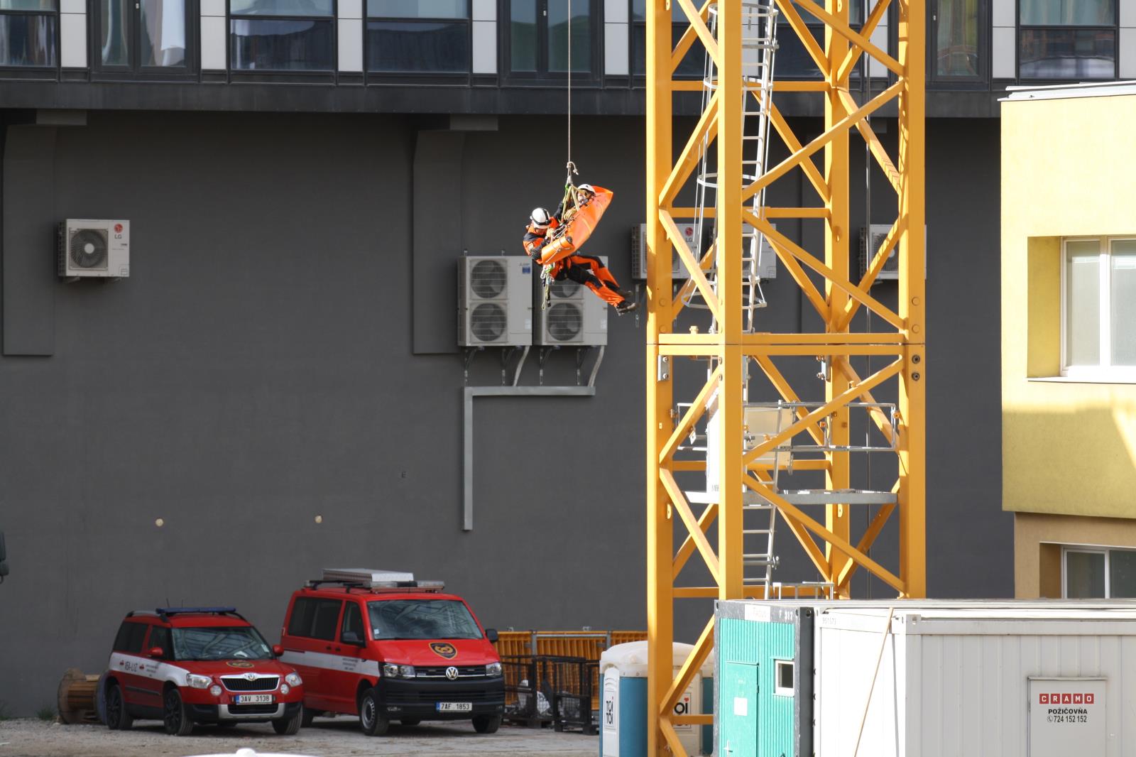 Hasiči zachraňovali muže z jeřábu