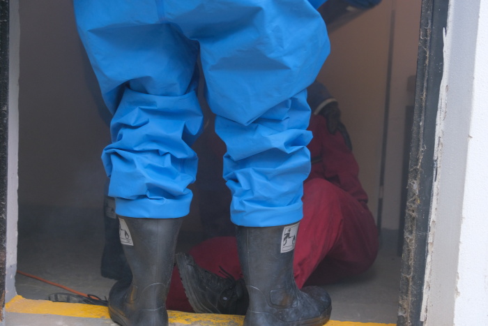 Hasiči museli v přetlakových protichemických oděvech zachraňovat jednoho zaměstnance v bezvědomí, který se zranil při výměně lahví s chlorem. Po vynesení z nebezpečné zóny jej museli – před předáním zdravotníkům – očistit v dekontaminační sprše. Rovněž museli utěsnit špatně fungující ventil a okolí nehody skrápět vodou, aby se chlor nedostal mimo areál bazénu, například na sousední venkovní koupaliště či mateřskou školu. Z bazénu, který se nachází mimo zasaženou obslužnou část, nemusely být žádné osoby evakuovány, pouze byly na vzniklou situaci upozorněny.
