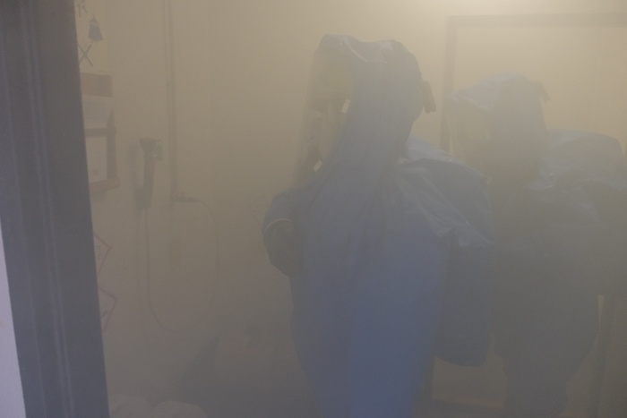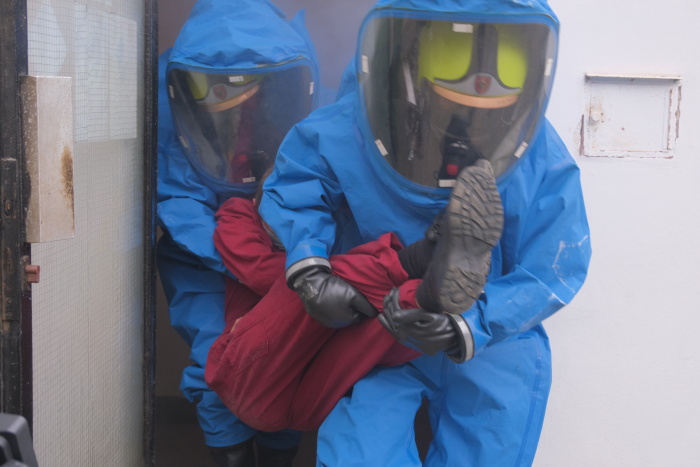 Po záchraně zraněného zaměstnance a zastavení úniku chloru byly vytvořeny dvě průzkumné skupiny, složené z profesionálních a dobrovolných hasičů, které v ochranných oblecích vyhledávaly v zasažených prostorách další osoby, které by se v nich mohly nacházet.Do cvičení se okrajově zapojil také personál a děti z nedaleké mateřské školy Trojlístek. Po varování, že z bazénu uniká chlor, přešli společně na odvrácenou stranu objektu a uzavřeli okna