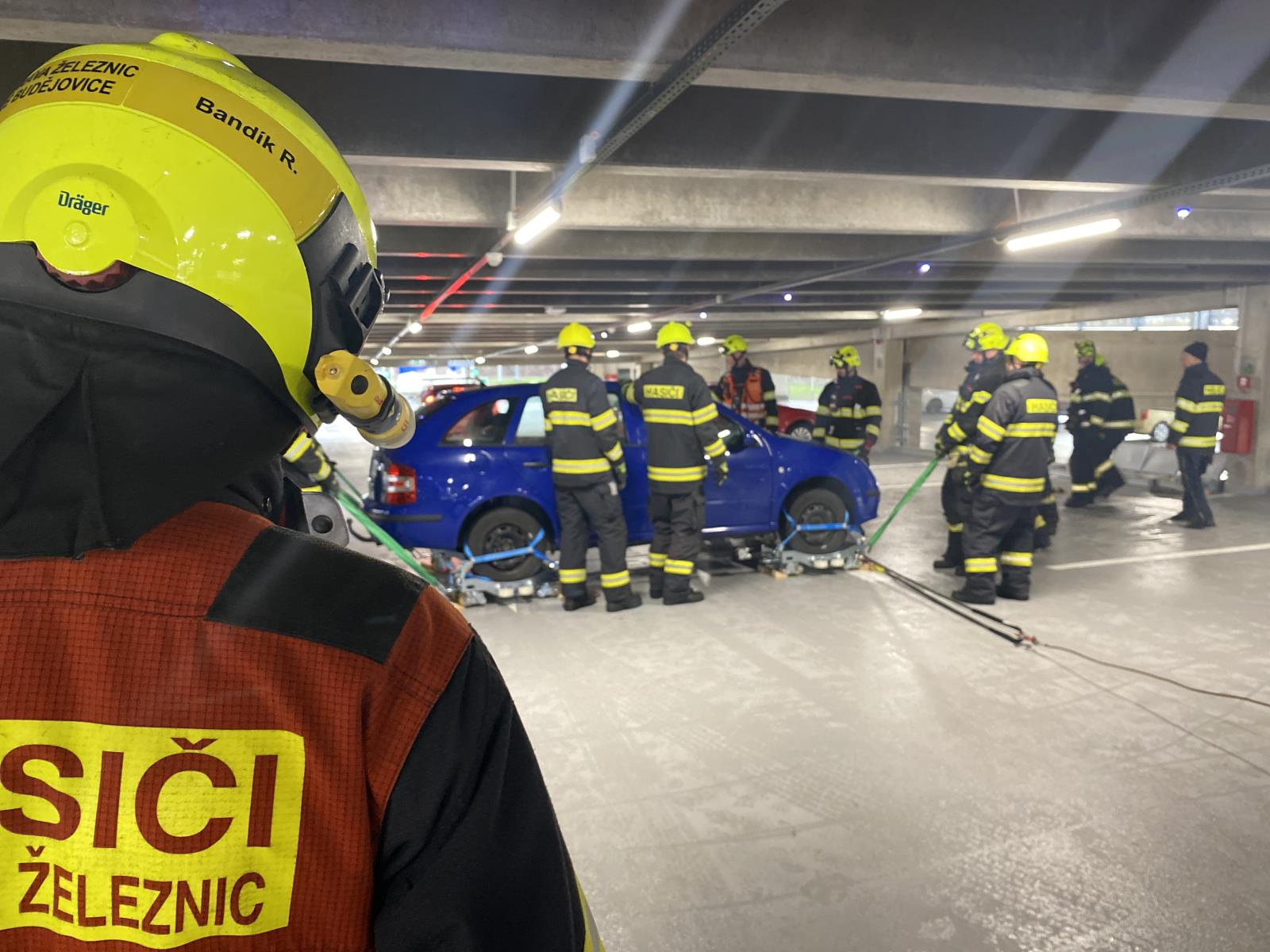 Již tento týden se v Českých Budějovicích u sportovní haly otevřou pro veřejnost nové garáže. Zda a jakým způsobem bychom zde zasahovali u případného požáru auta, si procvičily všechny tři směny profesionálních hasičů stanic České Budějovice a Suché Vrbné a také kolegové z podnikové jednotky SŽ České Budějovice.