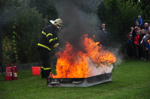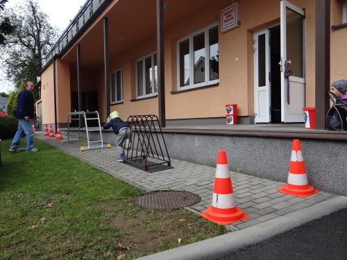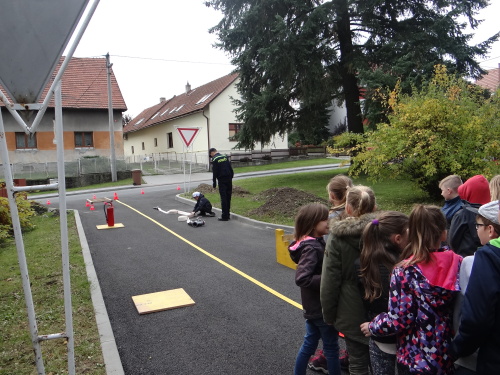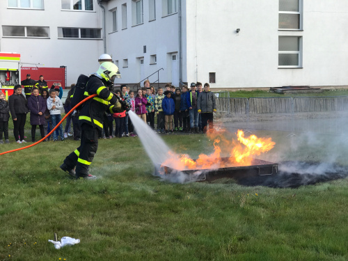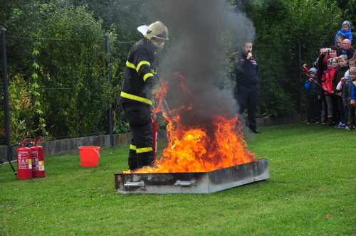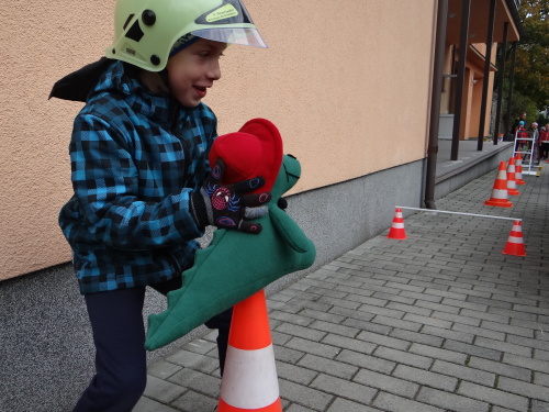 Tradičním účastníkem DPB bývají i dobrovolní hasiči z obce Hrabyně na Opavsku. Letos opět otevřeli pro zdejší základní a mateřskou školu svou zbrojnici, předvedli techniku, některé činnosti, oblékli děti do zásahových oděvů a hlavně opět jim trochu jinak než v minulých letech vytvořili překážkovou dráhu, kterou všechny děti absolvovaly. Předškolní děti musely během absolvování lehčích překážek ulovit malého plyšového dráčka Hasíka, kterého donesly až do cíle, starší se zapotili při manipulaci s hadicemi a přenosným hasicím přístrojem.