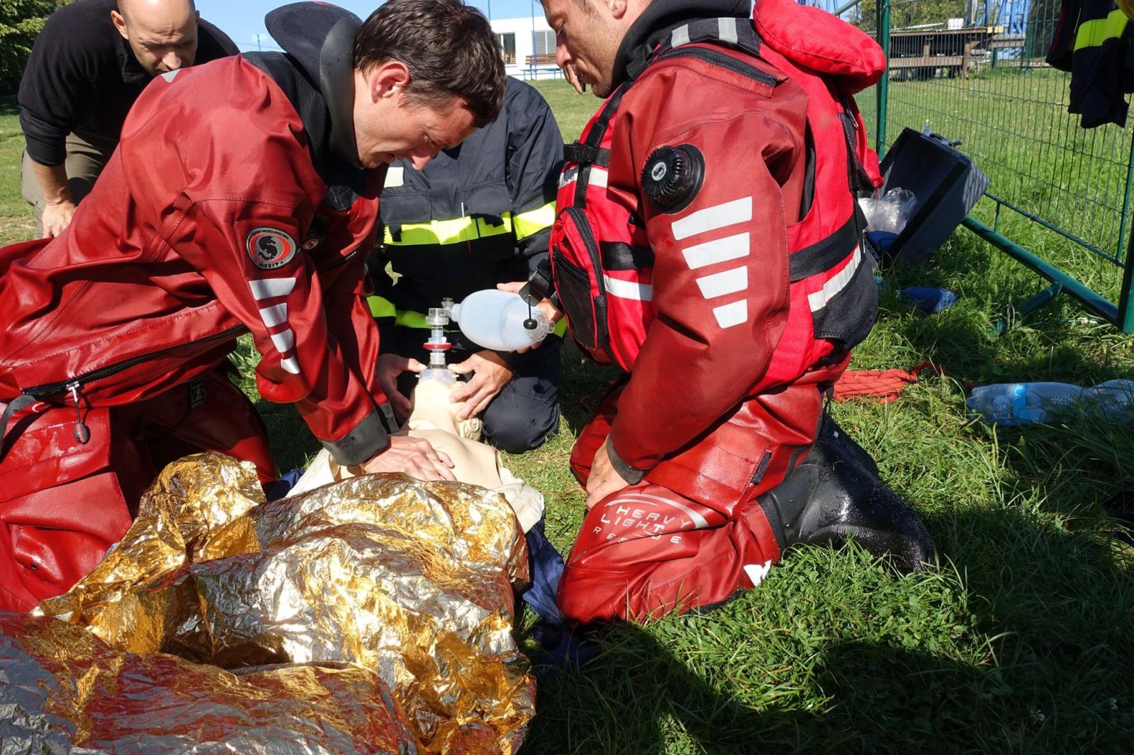 Celý jeden blok byl také věnován problematice potápění, kdy se hasiči rovněž seznamovali s fungováním potápěčů u HZS ČR a dalších složek IZS. Následně byli hasiči obeznámeni s výstrojí potápěče, možnými riziky při potápění a samozřejmě také s poskytováním první pomoci při zdravotních komplikacích specifických právě pro potápění.