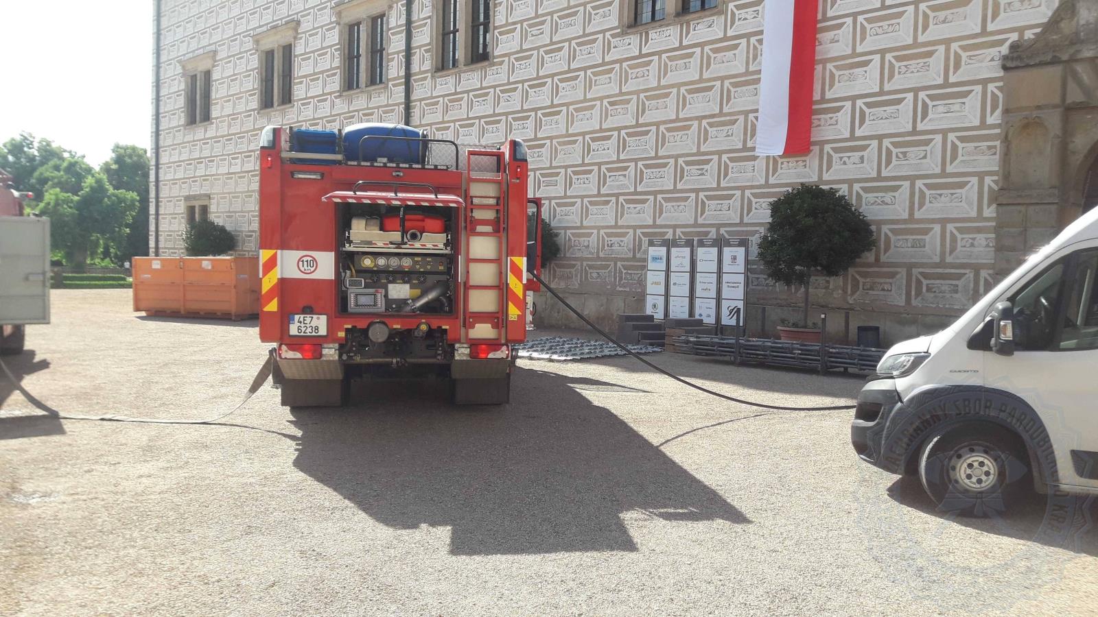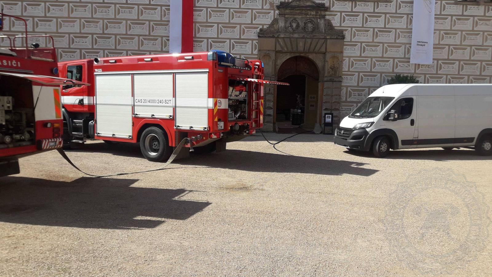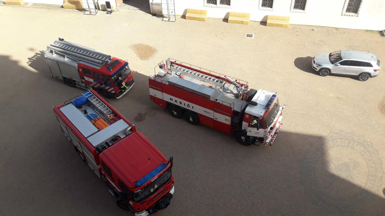 Požár zámku v Litomyšli, naštěstí se jednalo o prověřovací cvičení.