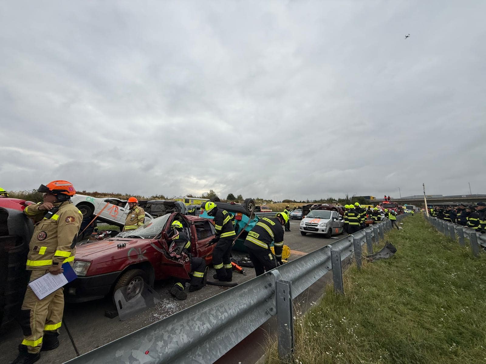 Ve středu 1. října 2025 krátce po poledni přijalo operační středisko HZS Středočeského kraje oznámení o hromadné nehodě několika nákladních a osobních vozidel na úseku Pražského okruhu u Modletic (okres Praha-východ). I přes to, že šlo o cvičení, záchranáři jednali jako při reálné události.