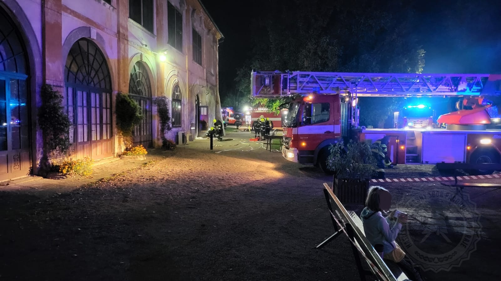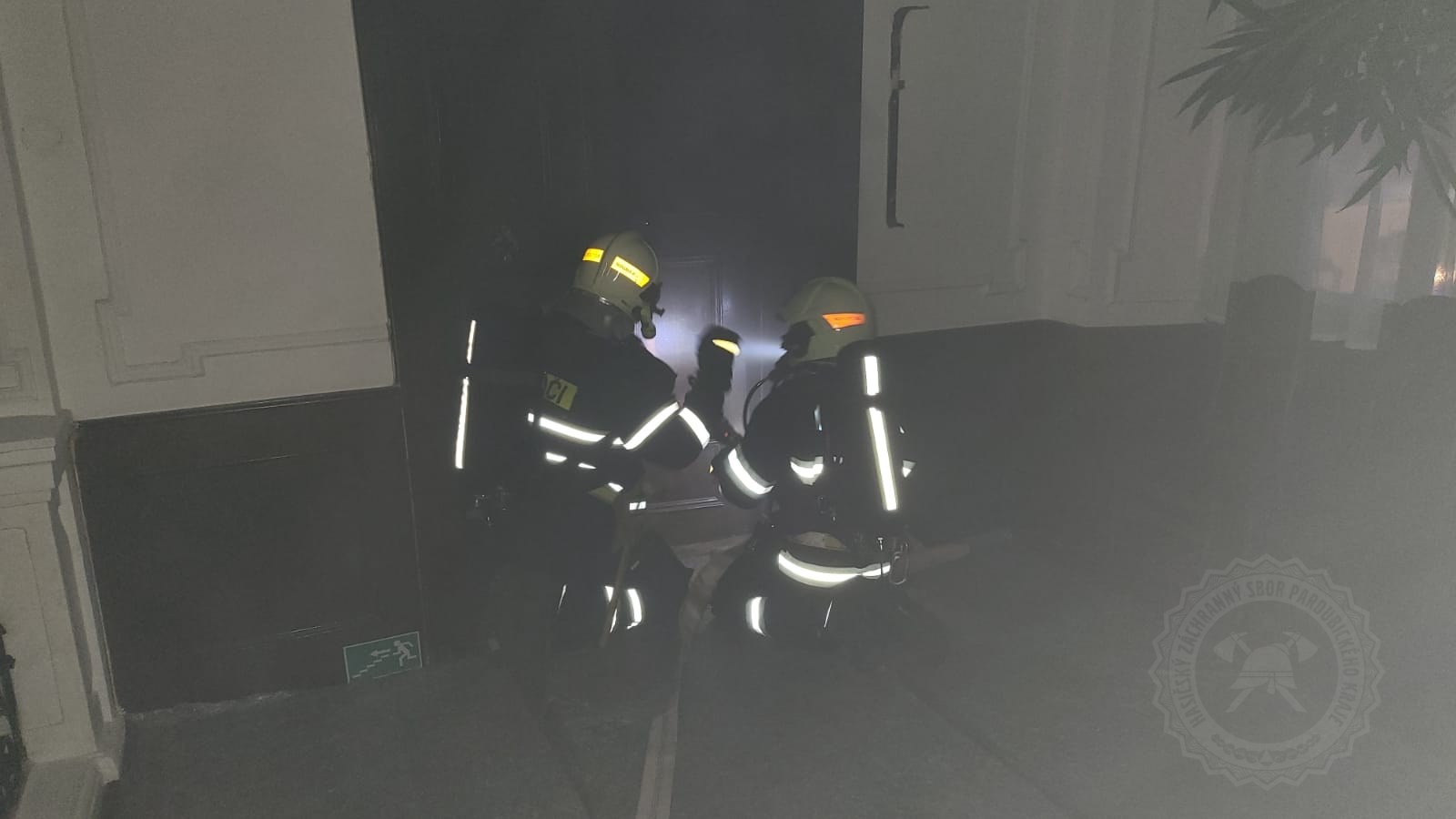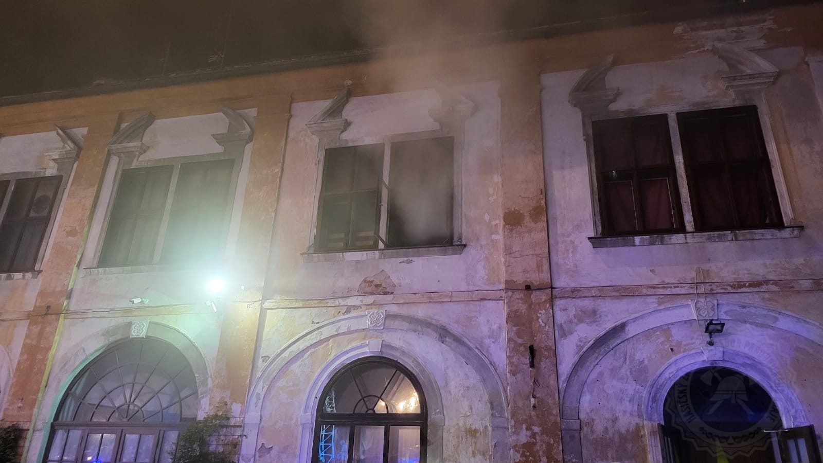 Hasiči tedy po samotném příjezdu provedli průzkum sálu, jehož kapacita je 265 osob, a nalezli zde celkem 5 osob. Některé byly evakuovány ještě před příjezdem jednotek na místo, další osoby museli hasiči co nejdříve evakuovat a dostat mimo nebezpečně zadýmený prostor. Další hasiči prováděli likvidaci požáru a ochlazování střechy tak, aby nedošlo k rozšíření požáru na střechu zámku. Nasazena byla také přetlaková ventilace k odvětrání zakouřených prostor.