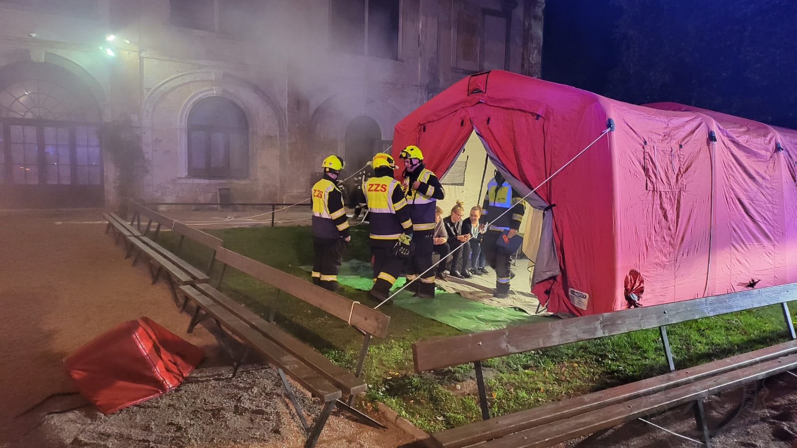 „Vytvořeno bylo místo pro zachráněné osoby, které byly umístěny do postaveného stanu pro třídění zraněných osob, k průzkumu všech prostorů jsem používal i termokameru, hasiči používali dýchací přístroje při likvidaci požáru,“ uvedl velitel zásahu nstržm. Tomáš Pátek.