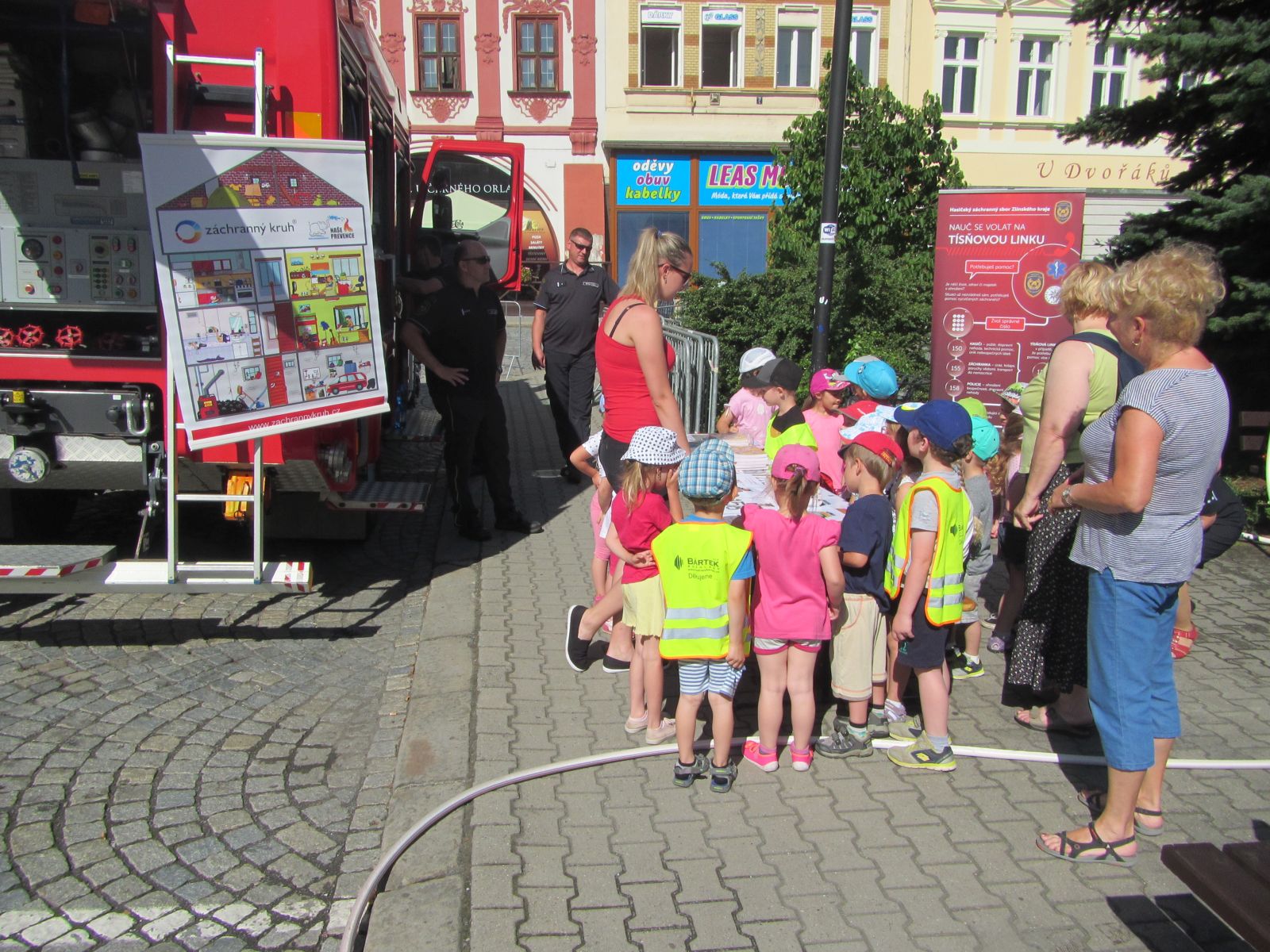 Na stanovišti profesionálních hasičů si kromě plnění úkolů mohli všichni zájemci z řad dětí prohlédnout zásahovou cisternu a její vybavení, potěžkat vyprošťovací zařízení nebo si mohli zkusit hašení vysokotlakým proudem. A protože všechny děti příjemně překvapily svými vědomostmi a dovednostmi, získaly jako odměnu za své snažení nejen sladkosti a omalovánky, ale i razítka do registrační karty. Ty z dětí, které získaly maximální počet šesti razítek, dostaly účastnický list a upomínkové předměty s tématem dopravy.
