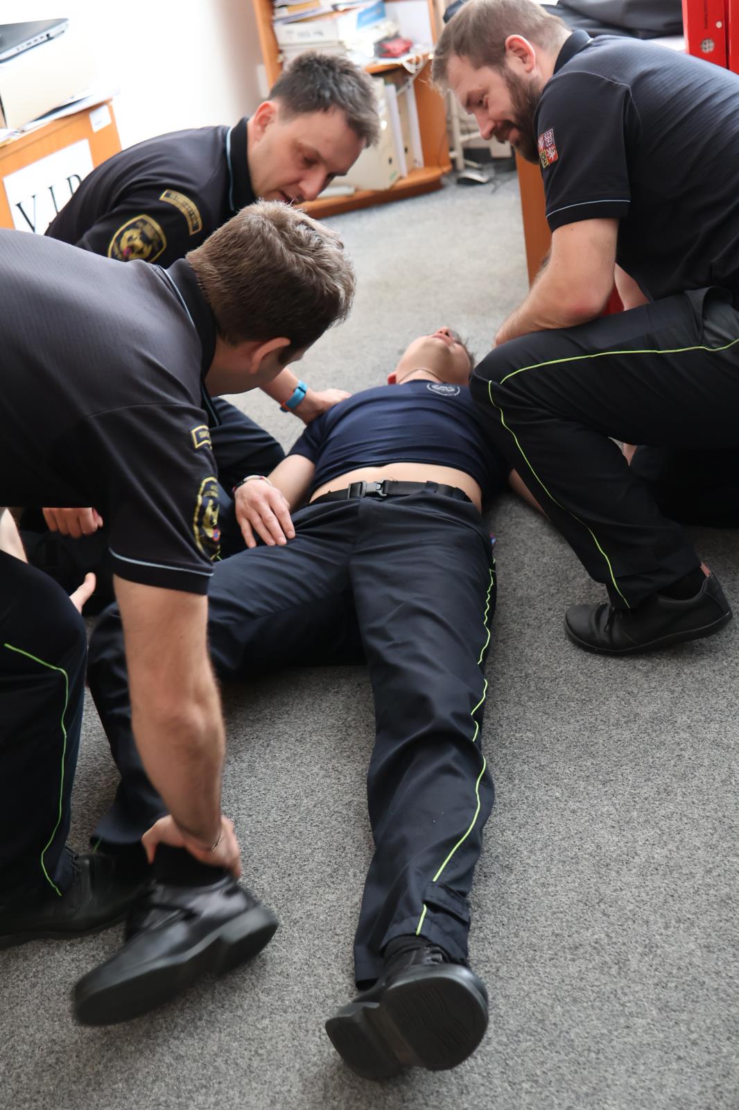 V druhé části školení se však hasiči dostali i k reálným scénářům. Instruktoři připravili modelové situace, ve kterých museli účastníci okamžitě jednat – mezi simulované zásahy patřila například resuscitace osoby po kolapsu, první pomoc při těžké autonehodě nebo záchrana osoby s vážnými úrazy po pádu z výšky.