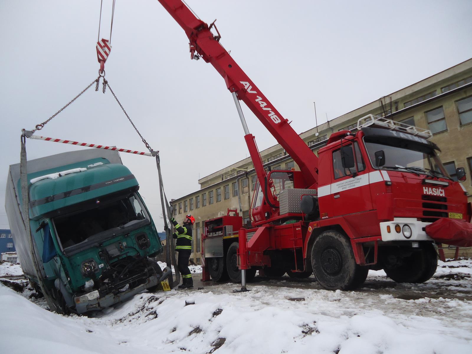 Čtvrtek 13. ledna 2022 – Hasiči mají různé specializace, mezi které patří také jeřábníci. Noví hasiči-jeřábníci sloužící na HS Brno...