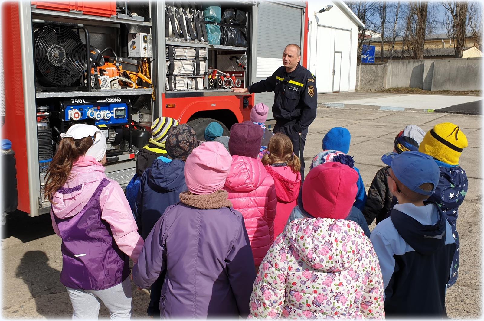 Sloužící hasiči jim ukázali hasičskou výjezdovou techniku, ukázali, co všechno hasič ke své práci potřebuje či jaký má zásahový oblek.