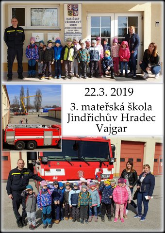 Děti ze 3. mateřské školky na sídlišti Vajgar využily pozvání jindřichohradeckých profesionálních hasičů a navštívily v pátek 22. března stanici v Jindřichově Hradci.