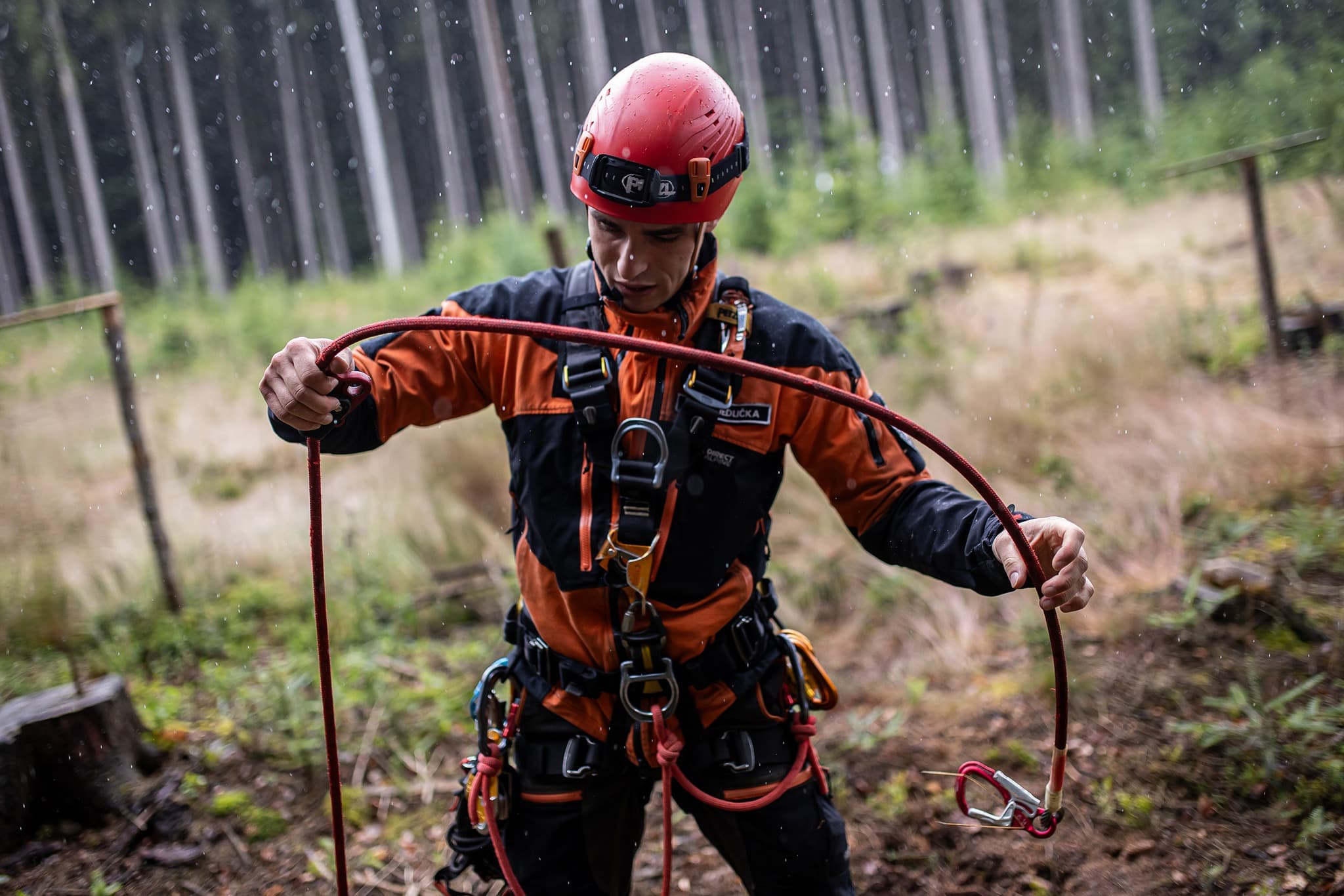 Záchranáři použili lanovou techniku a postupovali až do korun stromů, kde provedli zajištění figuranta. Nešlo ale jen o výšku – důraz byl kladen i na precizní komunikaci a vzájemné jištění. Po zajištění následoval citlivý sestup se simulovaným zraněným, kdy bylo třeba dbát na každý detail, aby nedošlo k dalšímu ohrožení.